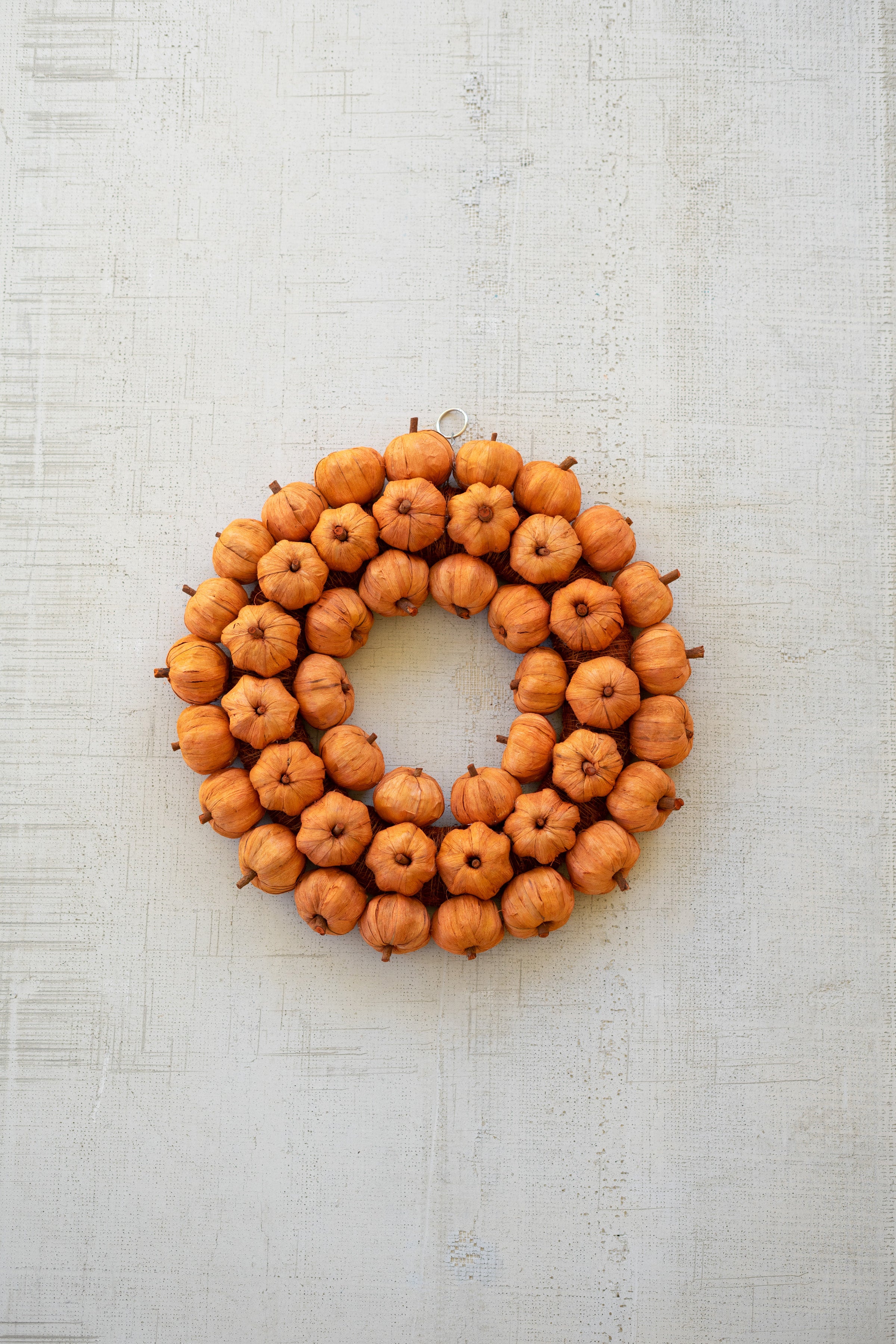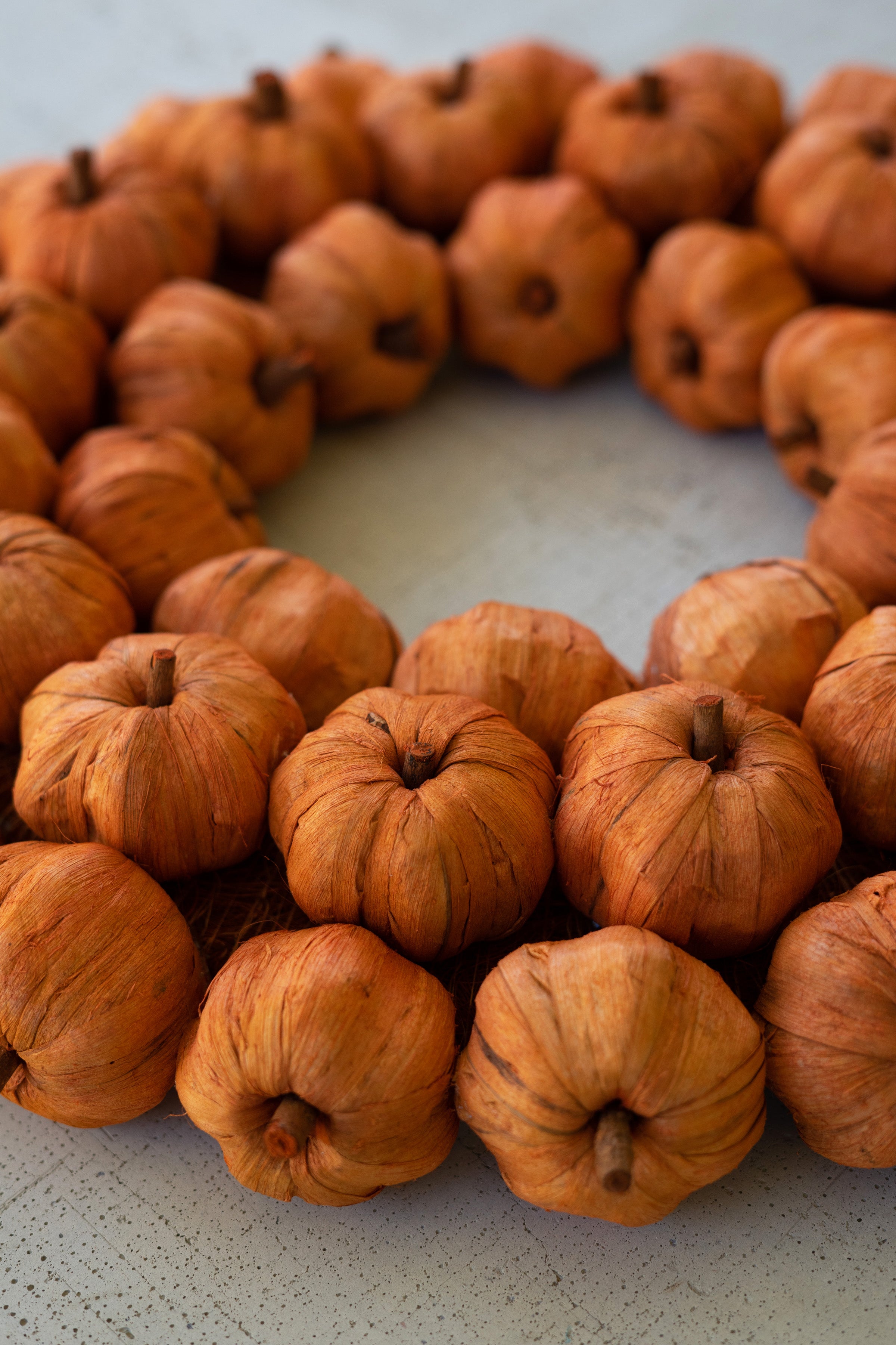 Here's a pumpkin wreath for your decorating needs this fall-iday season. Orange you glad you found this pretty pumpkin decor?