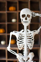 No bones about it; Mr. Skeleton wants to greet your guests. Use this skeleton on a stand for anatomy lessons and freaky frights for the Halloween season. Dress him up for the season, or let him rattle your trick or treaters as is.