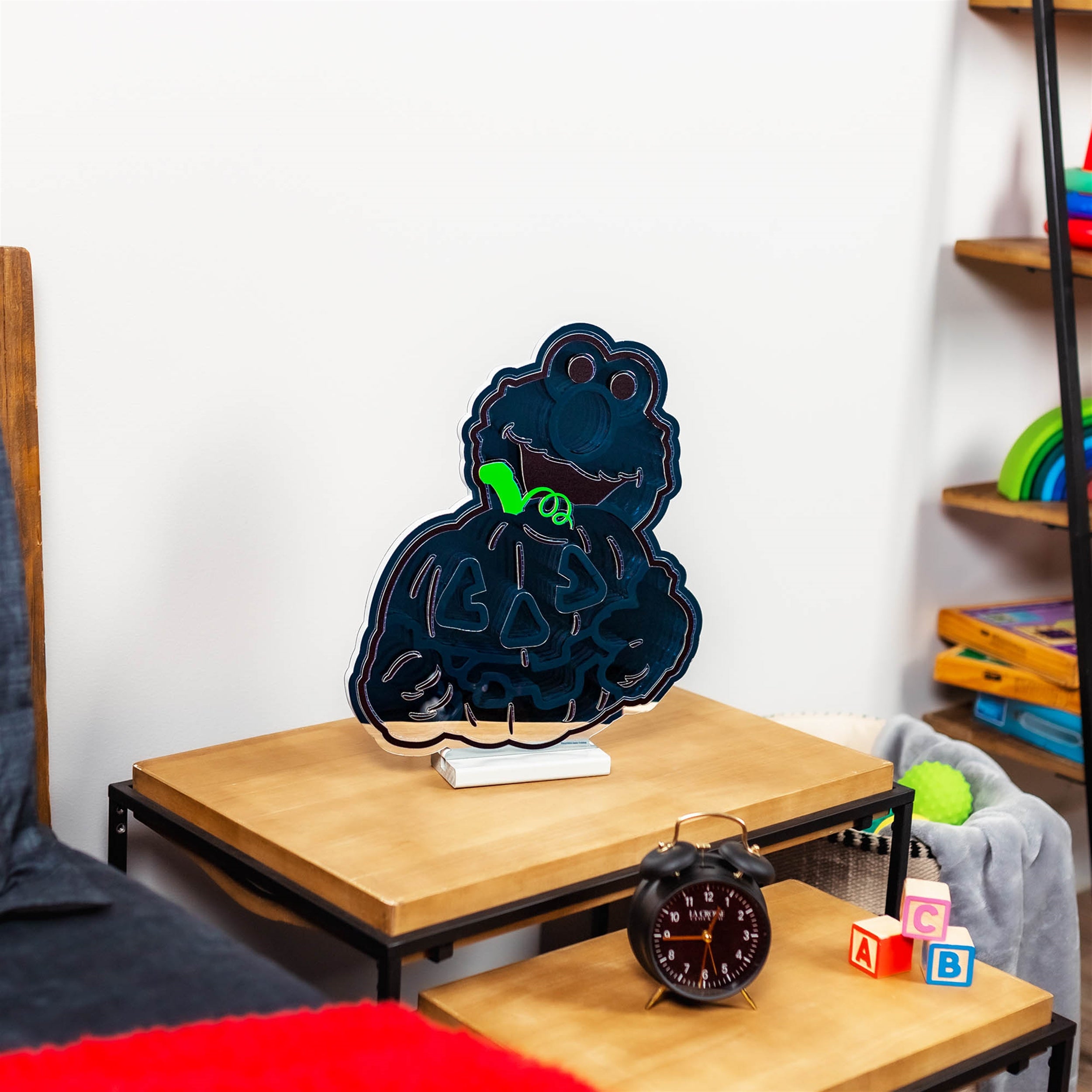 Get ready for a BOO-tiful Halloween with the Sesame Street Elmo Pumpkin Ekkolight! Featuring beloved friend Elmo joyfully holding a festive, smiling Jack-o’-lantern, this LED light glows in bright orange and red tones, bringing warmth, fun, and just the right amount of spooky cheer to your Halloween decor. Perfect for kids' rooms, play spaces, or family holiday decor, this playful and heartwarming design is sure to brighten up your seasonal decor spaces. Created in colaboration with Sesame Street, let Elmo brighten up your holidays with his big smile and boundless energy!