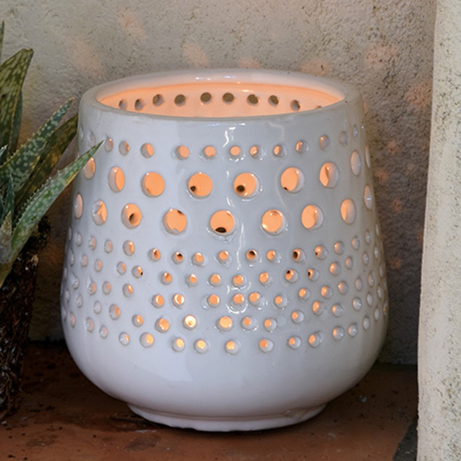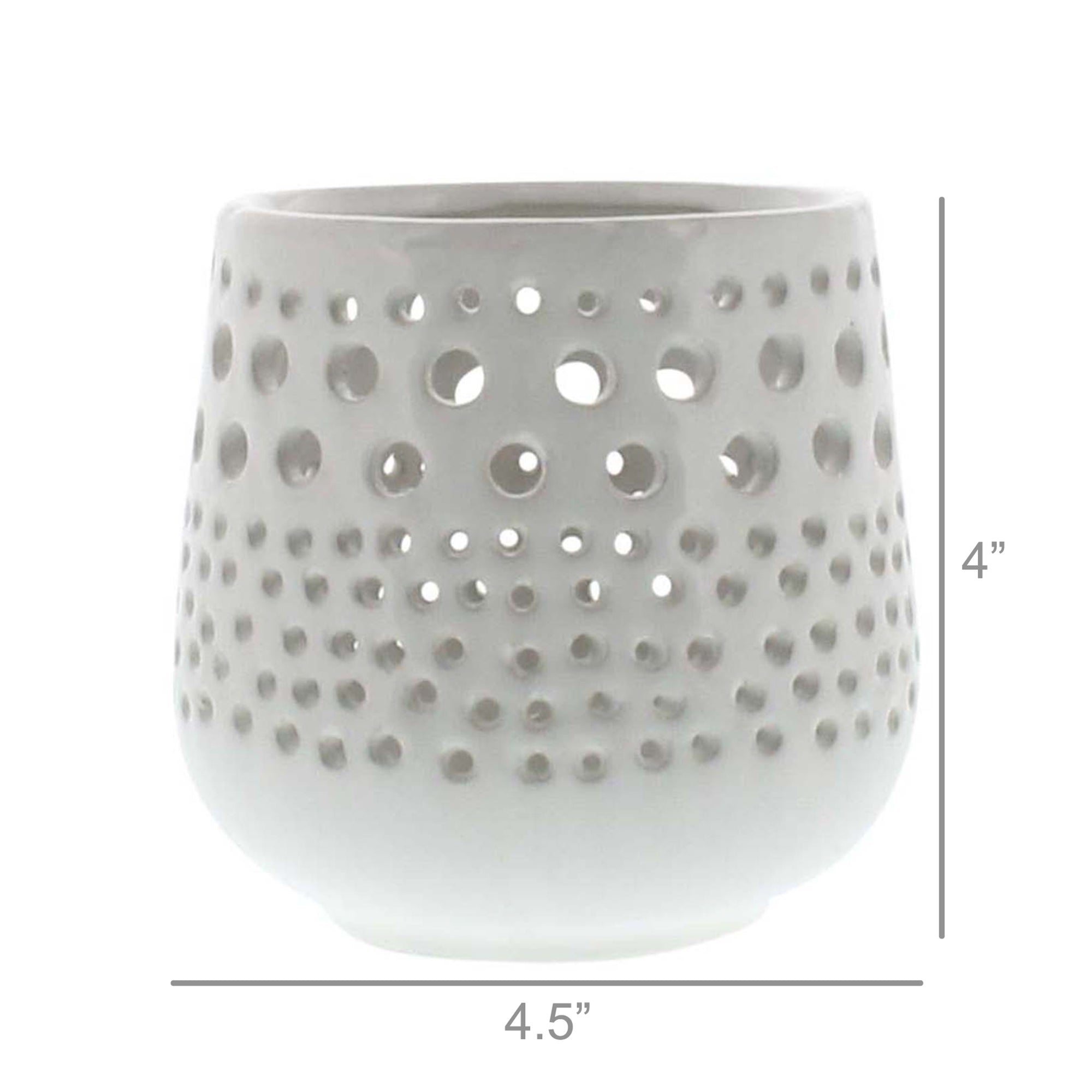 This votive allows a beautiful pattern of light to shine through when you light a candle. Crafted in a Shiny White finish allowing the Lanai Hurricane Votive holder to blend perfectly into any space. Wipe with damp cloth, Wipe with light detergent For Decorative Use Only - Do Not Use for Food
