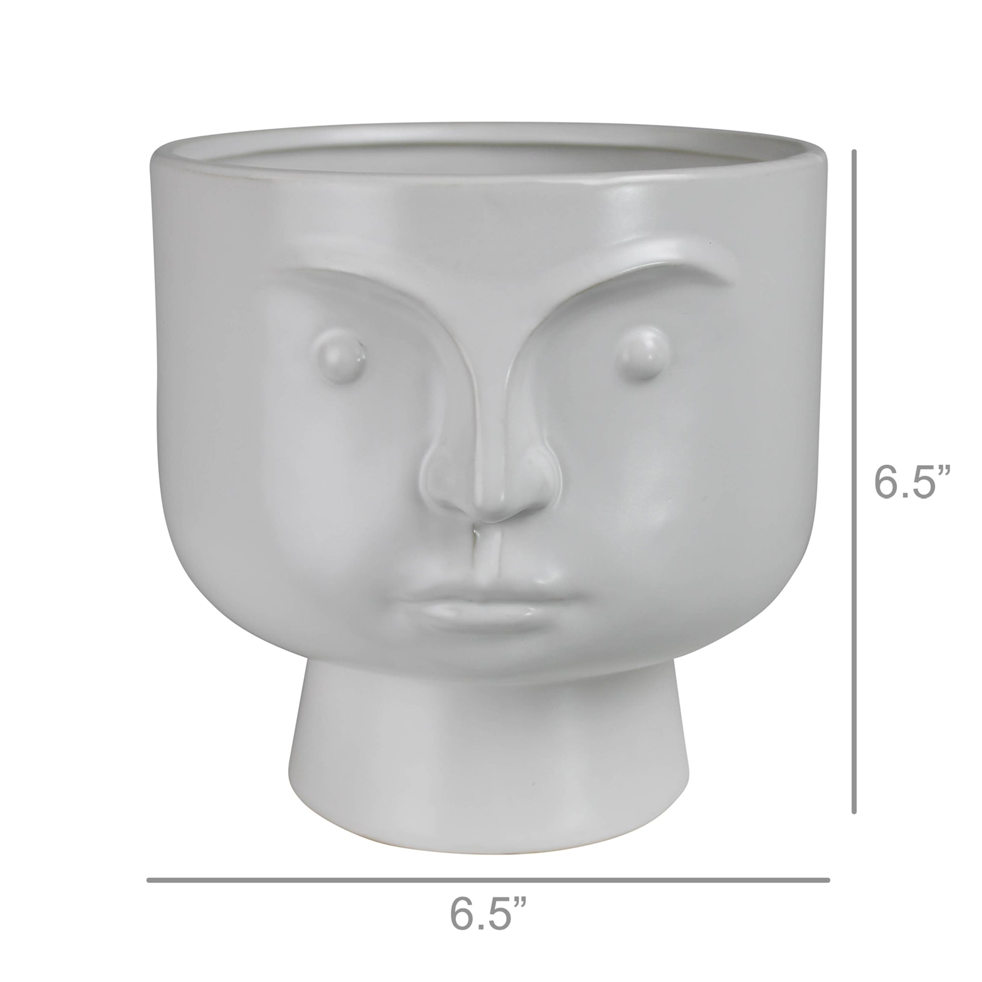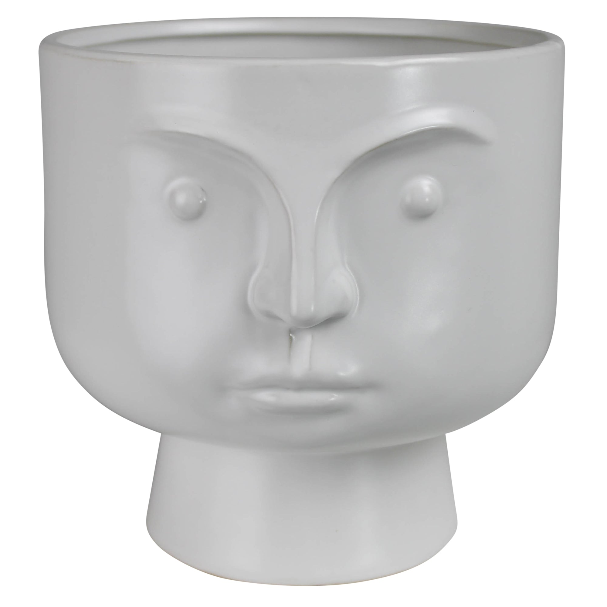 Our simple and stoic face cachepot comes to life when given a plant pompadour or a floral fauxhawk.