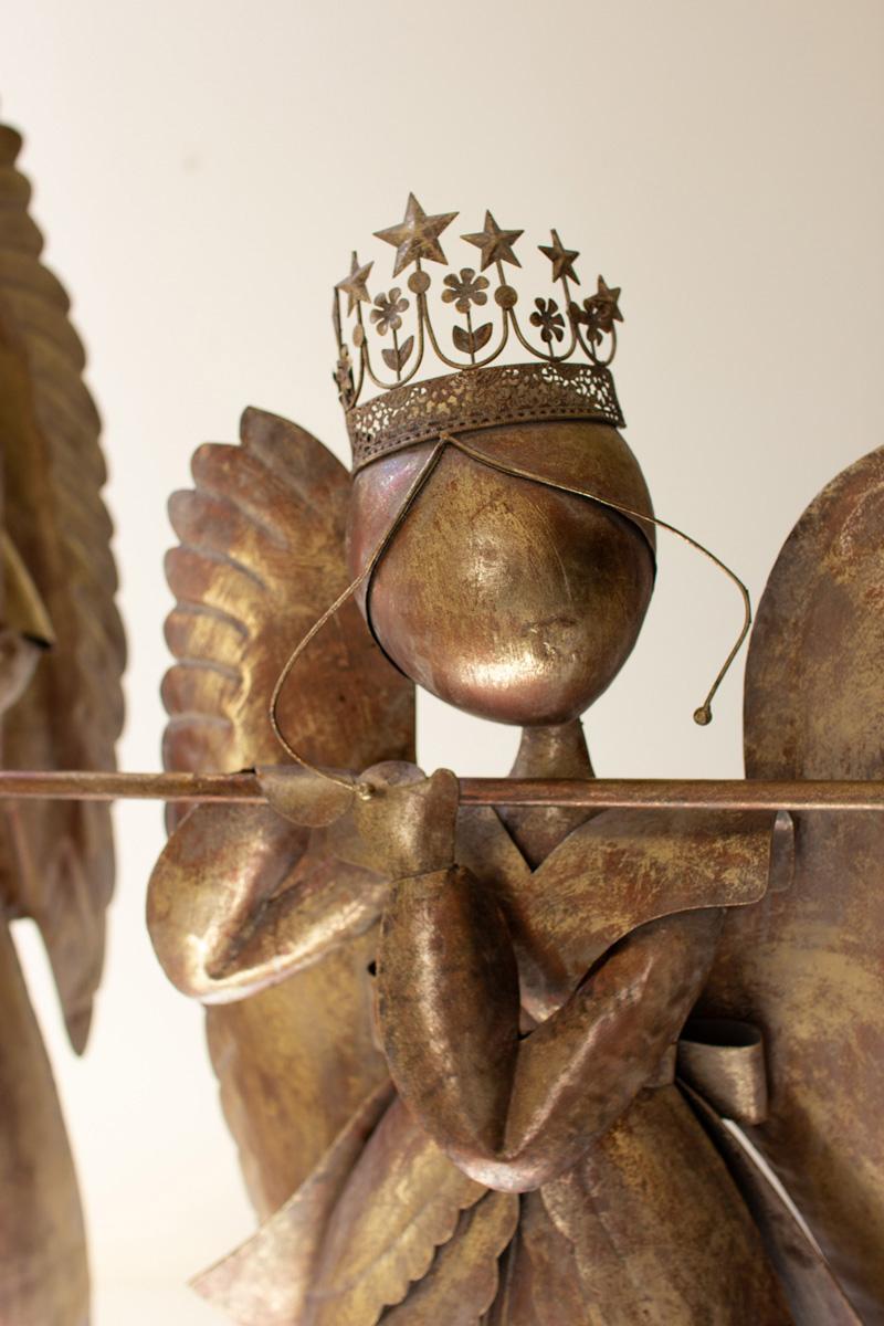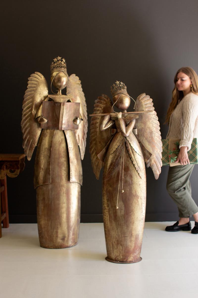 These two metal Christmas angels rejoice. Life-size, one plays a flute while the other sings a hymn. Perfect for your porch or large entryway during the yuletide season.