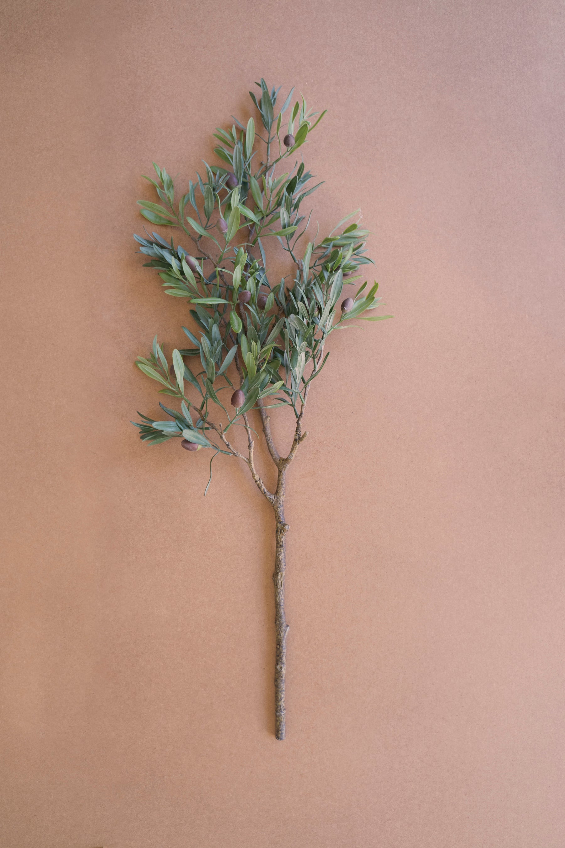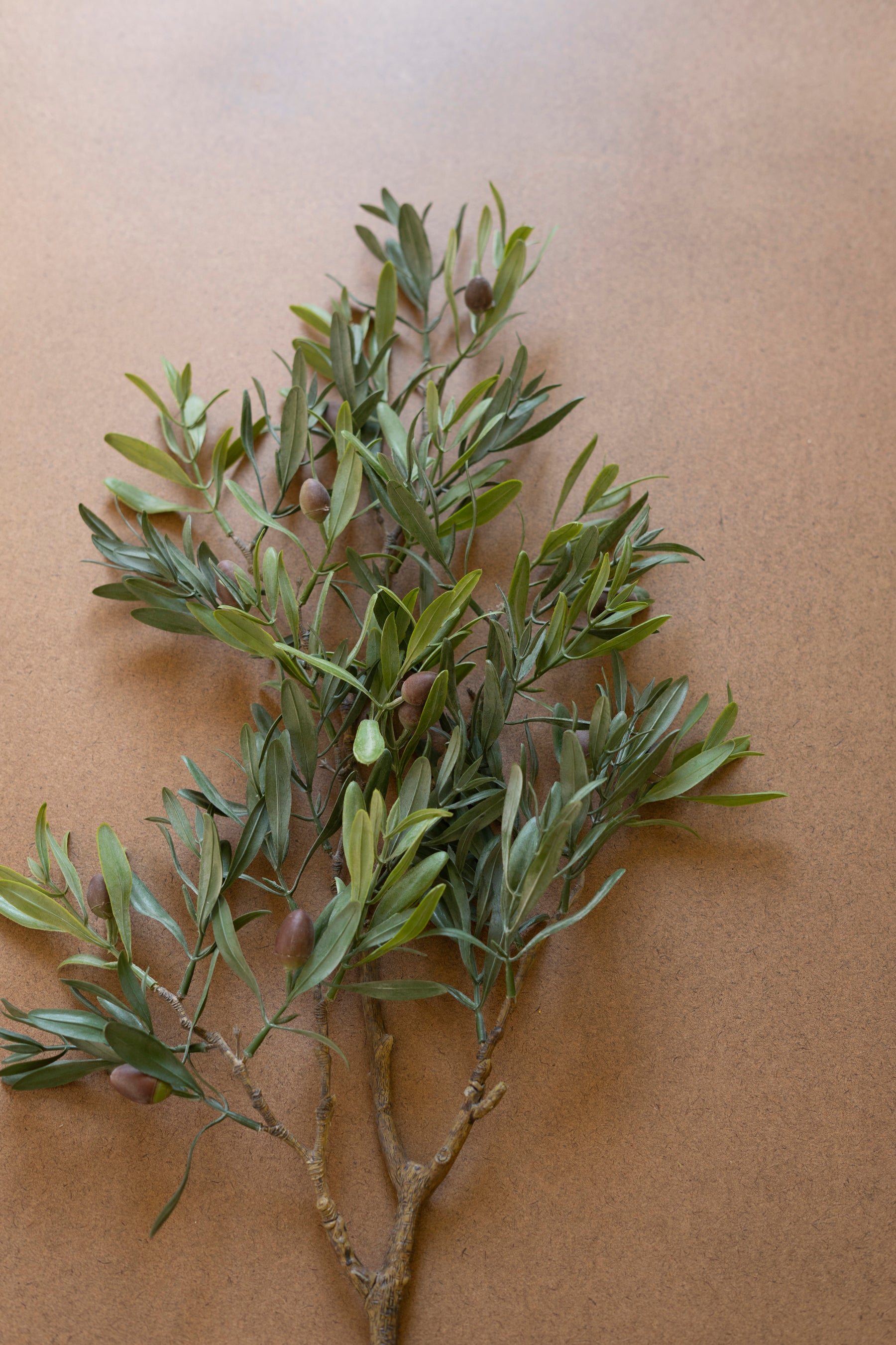 Add height and greenery with this 32" olive branch. Extend peace to your home and all who enter with this artificial olive branch in your entryway. Try one or a bunch in an empty planter or vase. Â