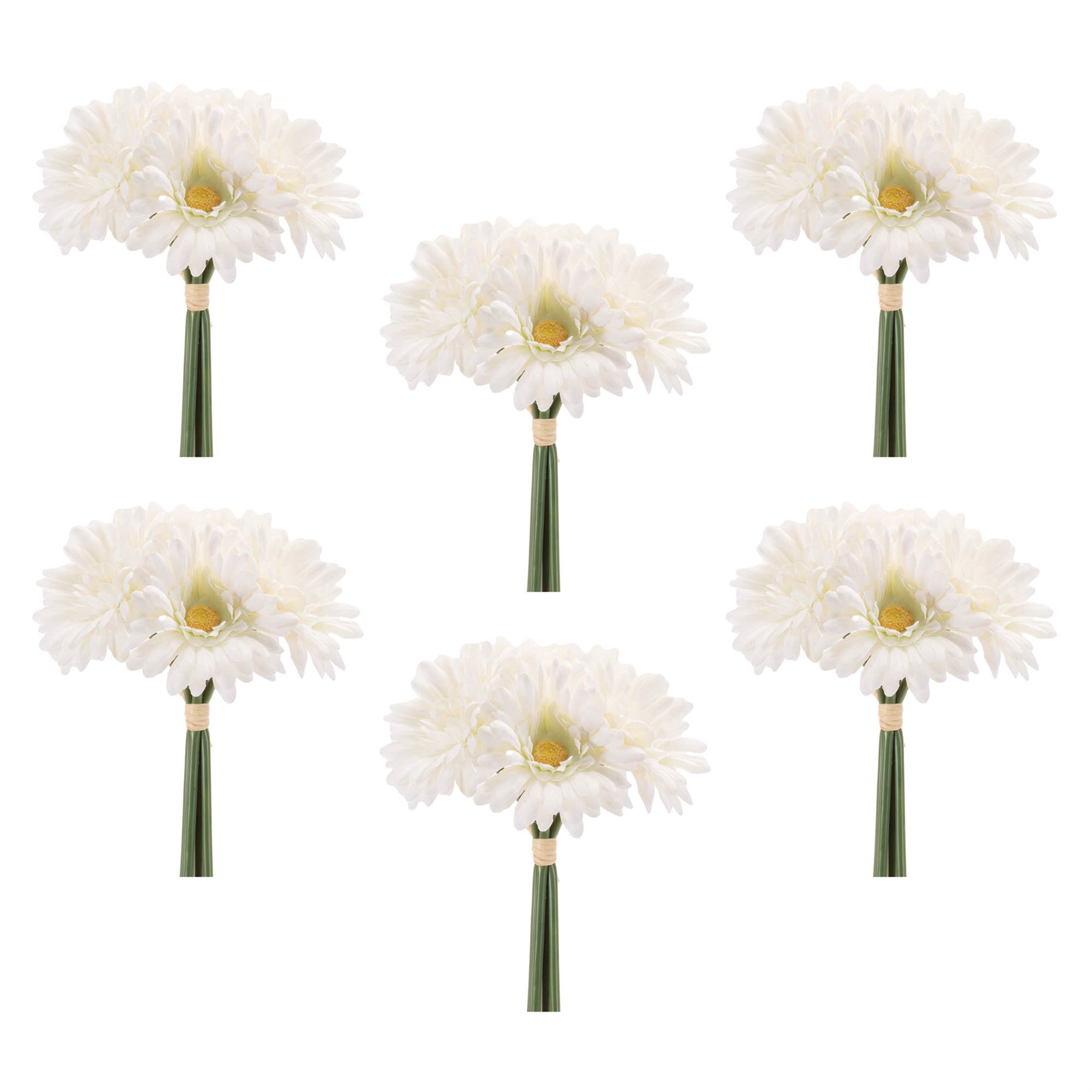 Bring the timeless charm of daisies into your home with this Gerbera Daisy Floral Bundle Set. Featuring soft white blooms and lush green stems, each bundle is neatly tied with natural raffia for a rustic touch. The wired stems offer flexibility for arranging, making them perfect for vases, spring centerpieces, or DIY floral crafts like wreaths and garlands. A classic addition to brighten any room.