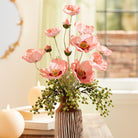 Add a burst of color and charm to your decor with this set of 6 Bright Pink Poppy Floral Sprays. Featuring vibrant pink poppy flowers accented with green foliage and buds, each spray delivers a lively, natural touch to any arrangement. Crafted from durable fabric, PE plastic, and iron, these wired stems offer versatility, allowing you to easily shape and arrange them in vases, wreaths, garlands, or hanging baskets. Perfect for bringing a refreshing pop of color to your spring or year-round floral displays.