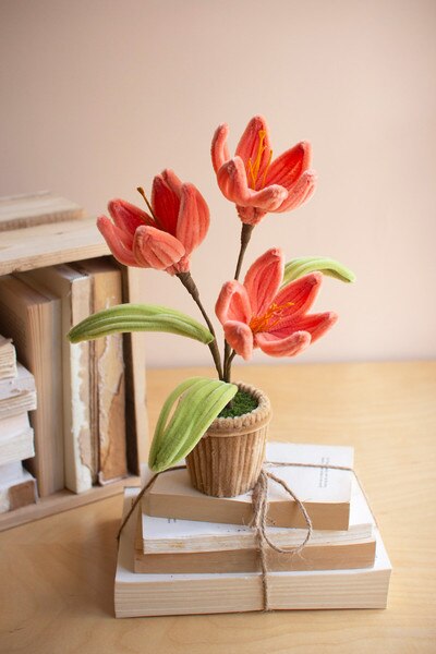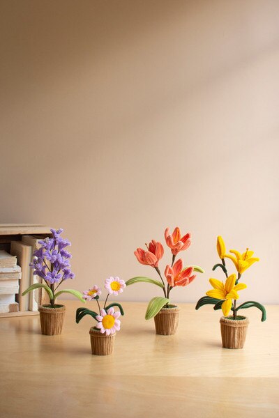 Bright and full of life, this pipe cleaner flower assortment brings a cheerful burst of color to any space. Each stem features playful shapes and soft tones that make arranging easy and enjoyable. Whether displayed in a simple vase or gathered as a mixed bouquet, they create an uplifting, garden inspired moment that lasts through every season. Set includes 4 pieces. One each style/size.