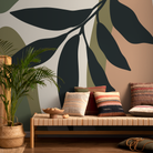 Abstract Botanical Wallpaper in Charcoal, Green, and Terracotta - C015
