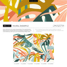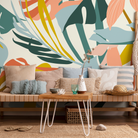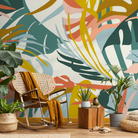 Abstract Botanical Wallpaper with Modern Tropical Leaves in Teal, Pink, and Yellow - C211