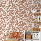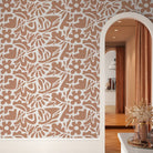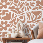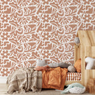 Abstract Floral Wallpaper with a Cutout Botanical Motif in Terracotta Orange - D674