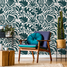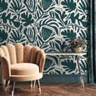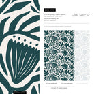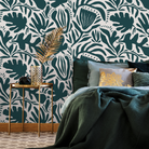 Abstract Floral Wallpaper with Modern Botanical Shapes in Green - D707