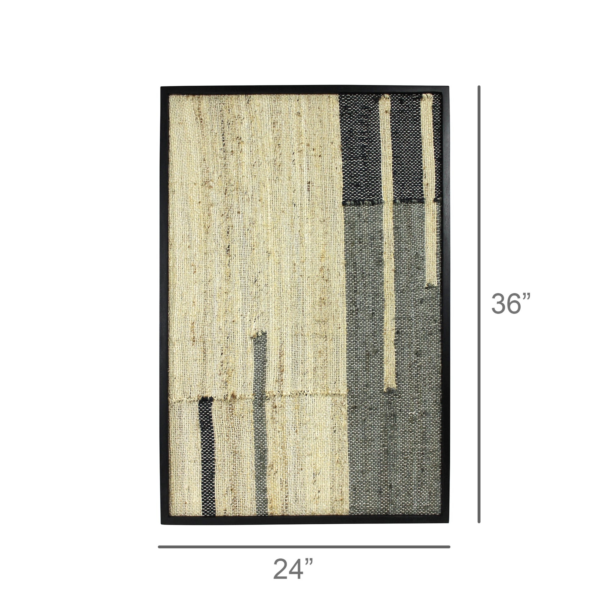 Cotton and hemp are kilim loomed into graphic patterns and framed in solid mango wood with a bold black stain. Each statement-worthy piece is hand loomed so beautiful variations are to be embraced.