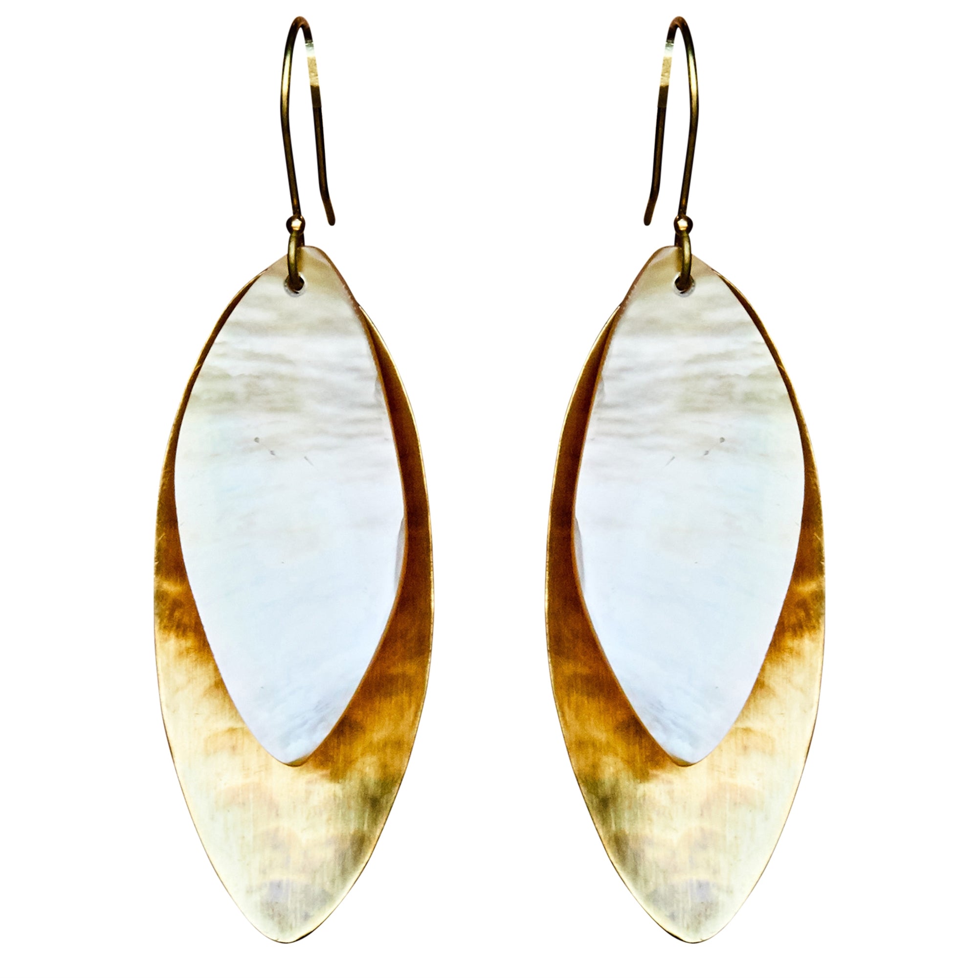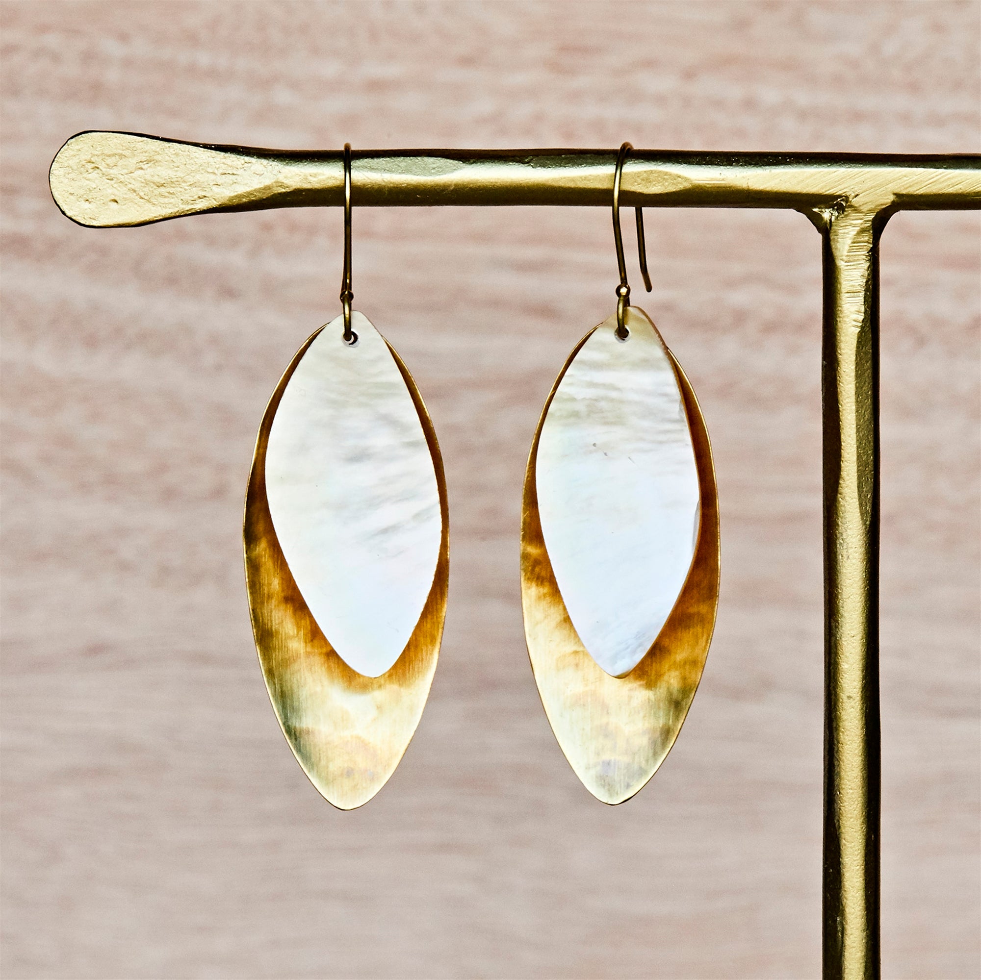 Petals of metal and Mother of Pearl are pinned together creating a light catching collection designed for movement.