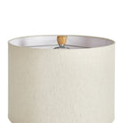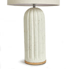 Made of a composite, natural ecomix, the Elise Lamp base is composed of hardening agents for longevity. The finish is warm white with a pitted texture that shows the composition of the material. With a drum shade, and neutral tone, works well in most every environment.