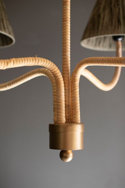 Rattan Wrapped Chandelier With Raffia Shade