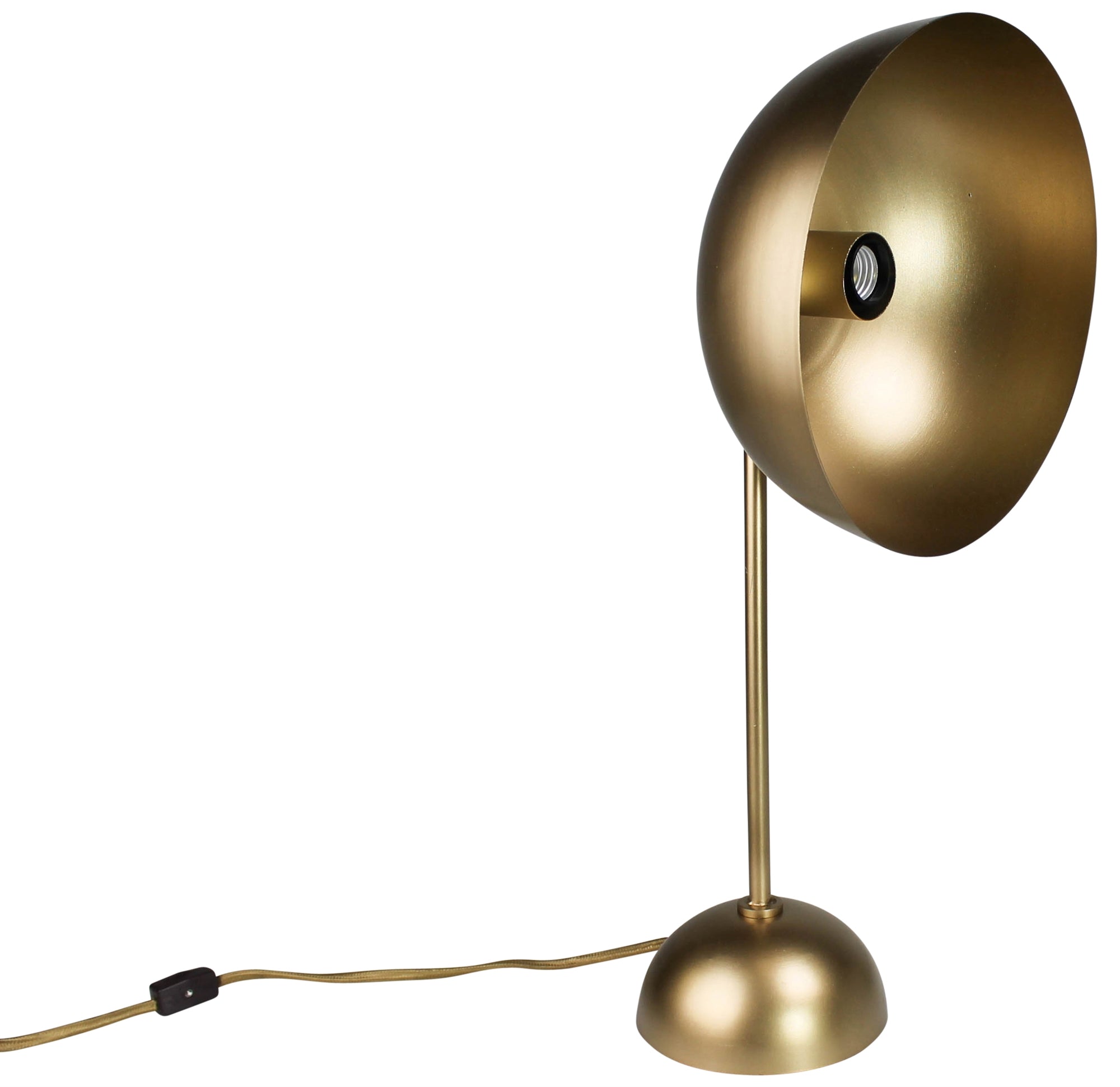 Masculine in stature yet ladylike in styling the brass half-sphere reverberates the light of the light bulb. 5’ cloth-wrapped, plug-in cord. Light bulb not included.