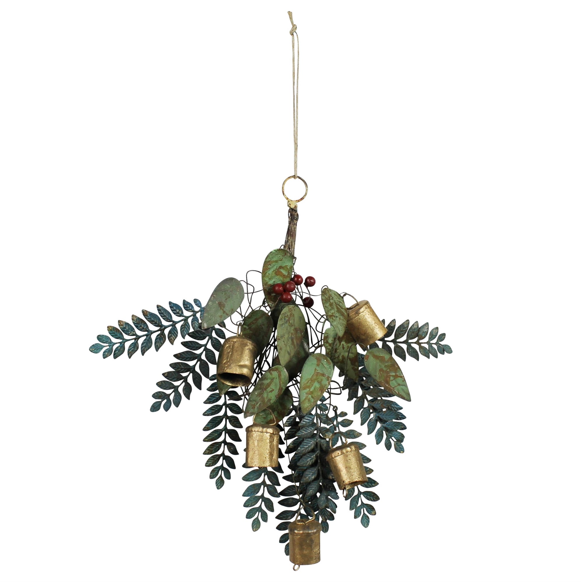 Crafted of metal with hand painted leaves and a hand applied finish this cluster of foliage and bells is a timeless piece that captures the essence of a holiday bouquet.