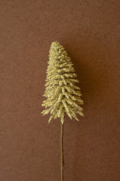 This mini yellow bottle brush stem adds a sunny little spark to your floral displays. Its soft texture and warm color bring a playful touch to vases, baskets, or seasonal arrangements. Small in size but full of charm, it is a sweet accent for brightening any corner.