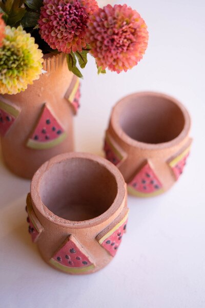 Short Clay Watermelon Vase (Case Pack)