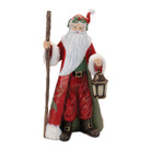 Classic Holiday Charm – Traditional Santa figurine with rich red and green tones, a rustic staff, and a festive lantern.