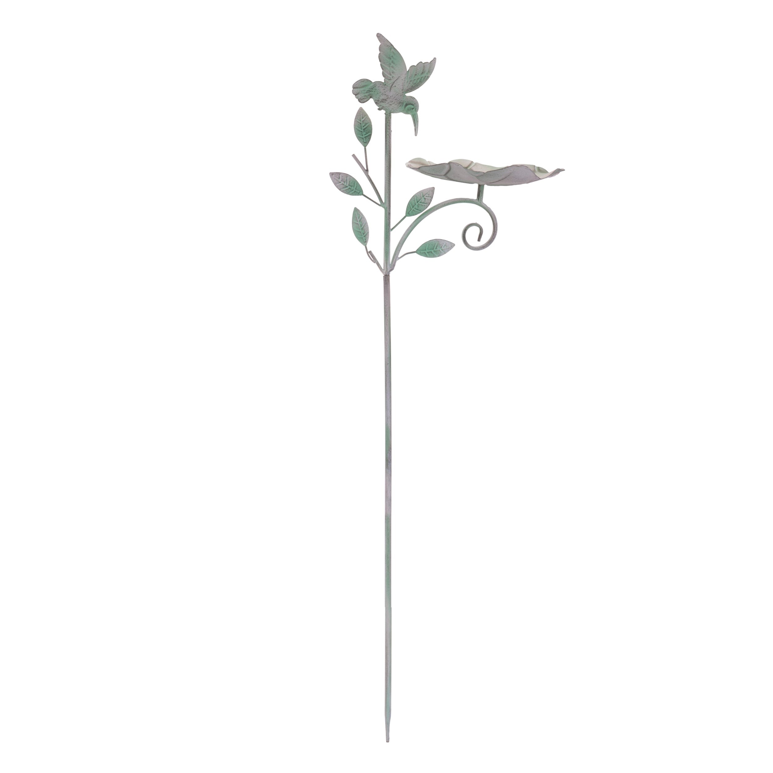 Iron Hummingbird Leaf Bird Feeder Garden Stake (Set of 2)