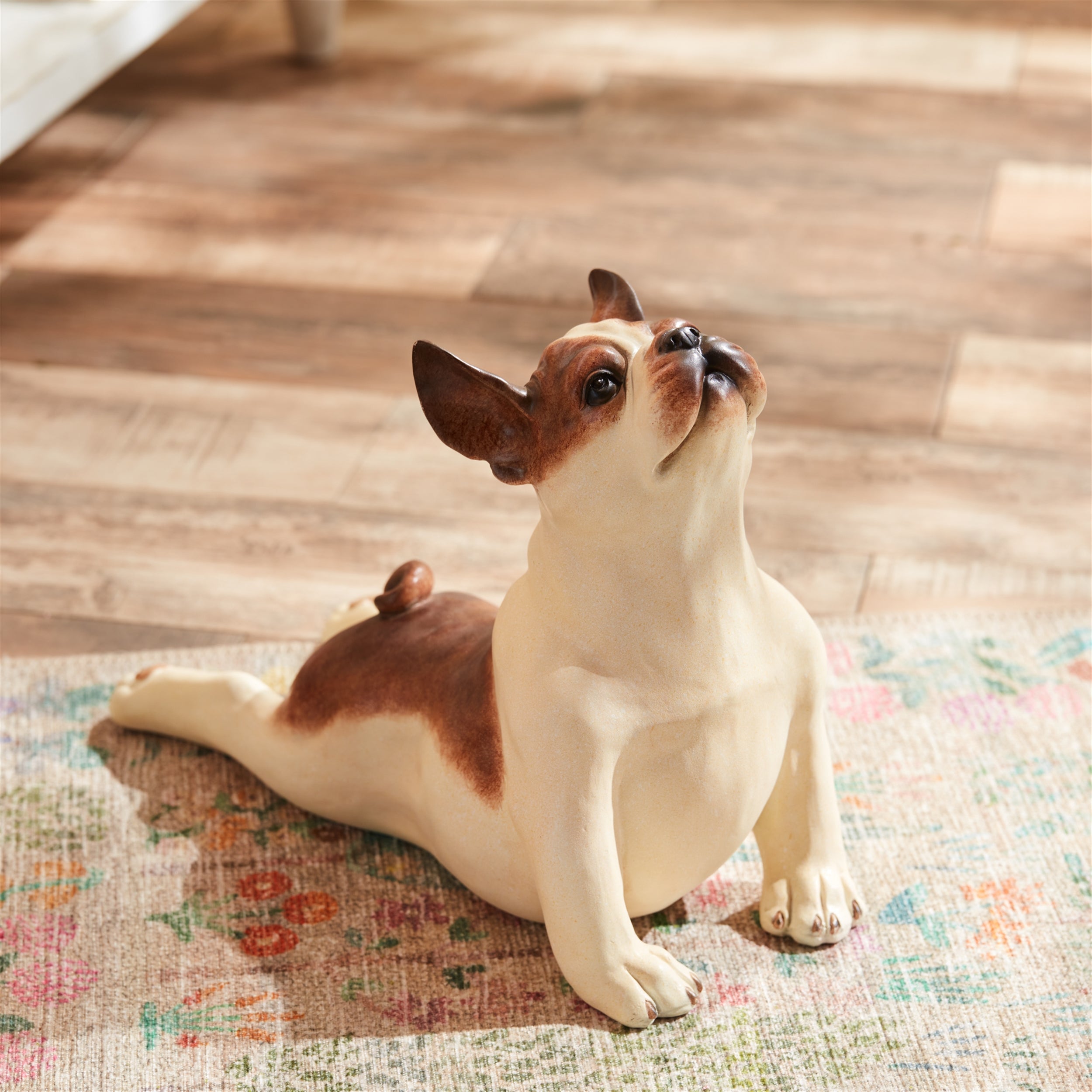 Bring a playful yet serene vibe to your home with this set of two yoga dog statues. Crafted from durable polyresin, these adorable bulldog figures are designed in an upward dog yoga pose, with warm brown and beige tones that add a cozy touch to your decor. Perfect for adding a whimsical and calming element to any space, these statues make a charming addition to bookshelves, mantels, or yoga-inspired displays.