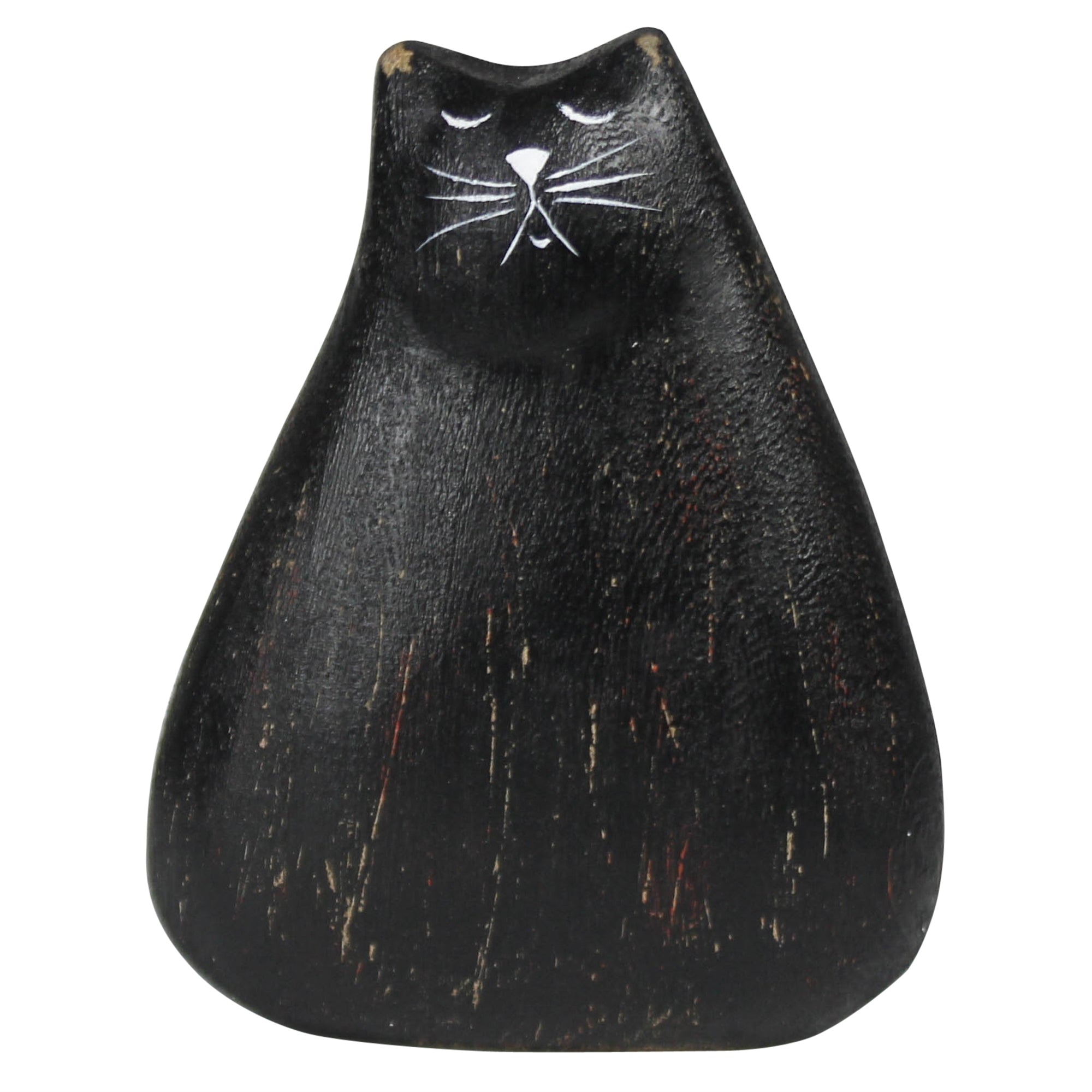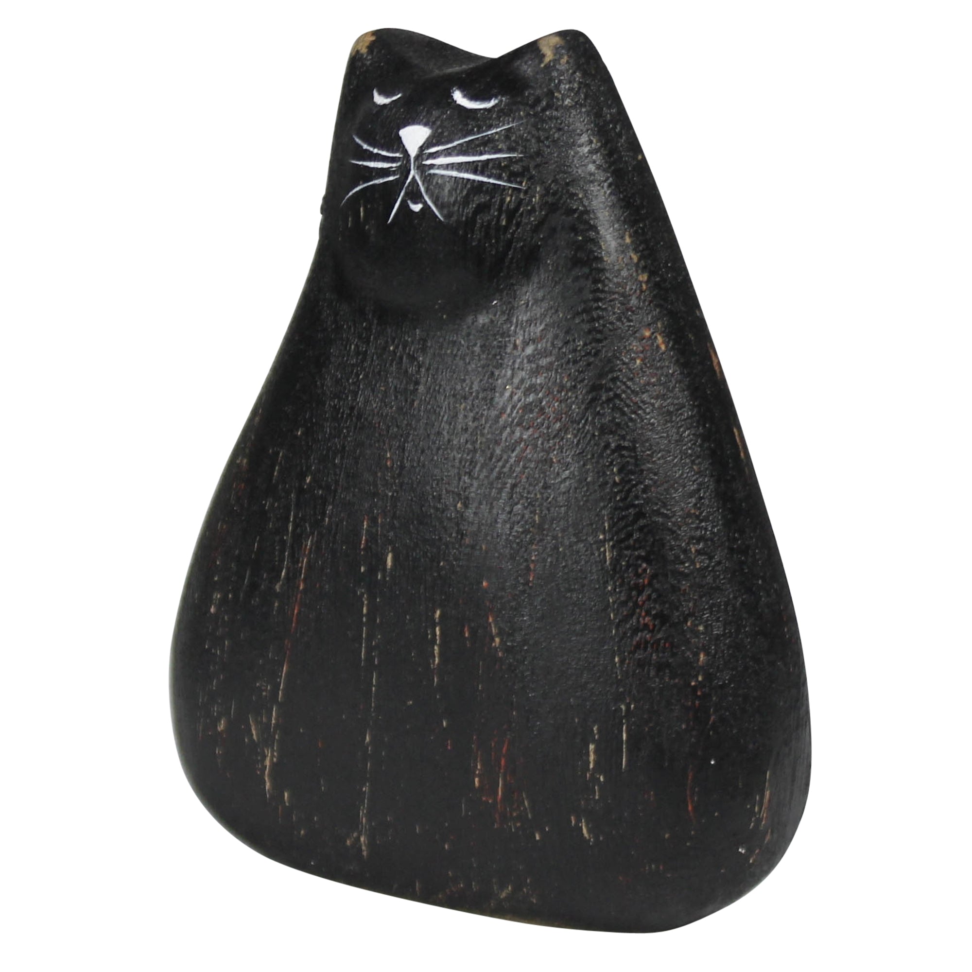 Playfully carved and finished in a black paint, this whimsical cat figurine brings a touch of charm and curiosity to any space. With its unique design and intricate details, it adds a fun, modern twist to your home decor.