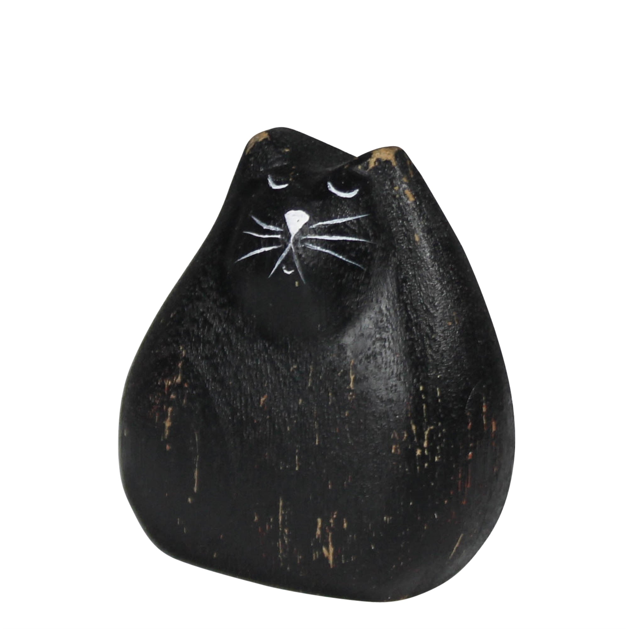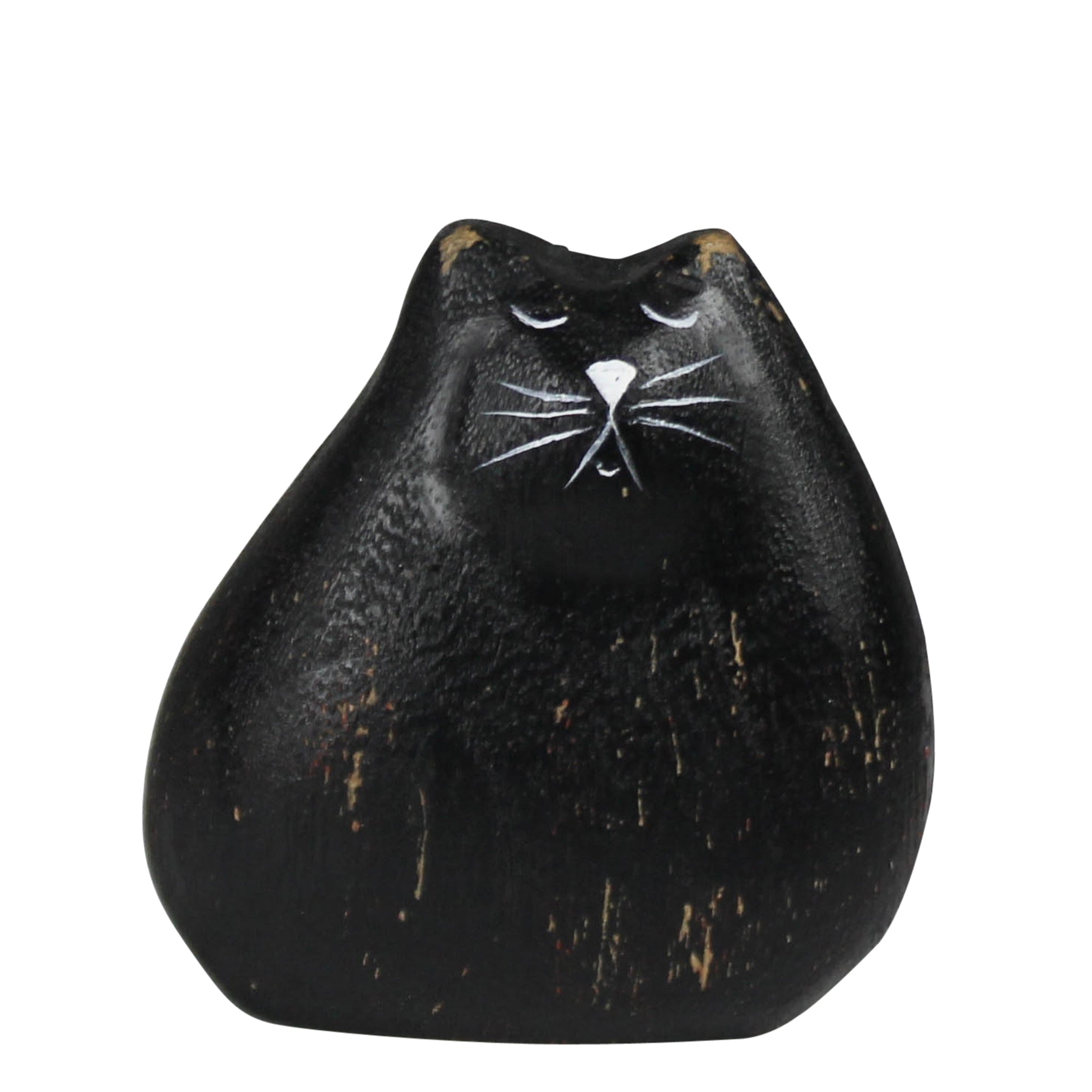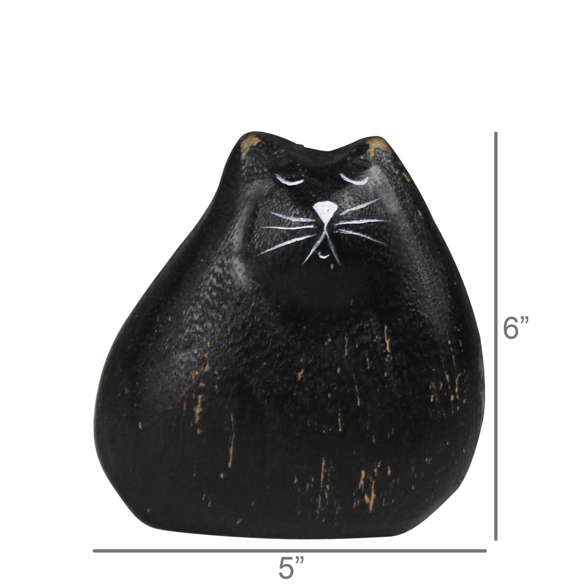 Playfully carved and finished in a black paint, this whimsical cat figurine brings a touch of charm and curiosity to any space. With its unique design and intricate details, it adds a fun, modern twist to your home decor.