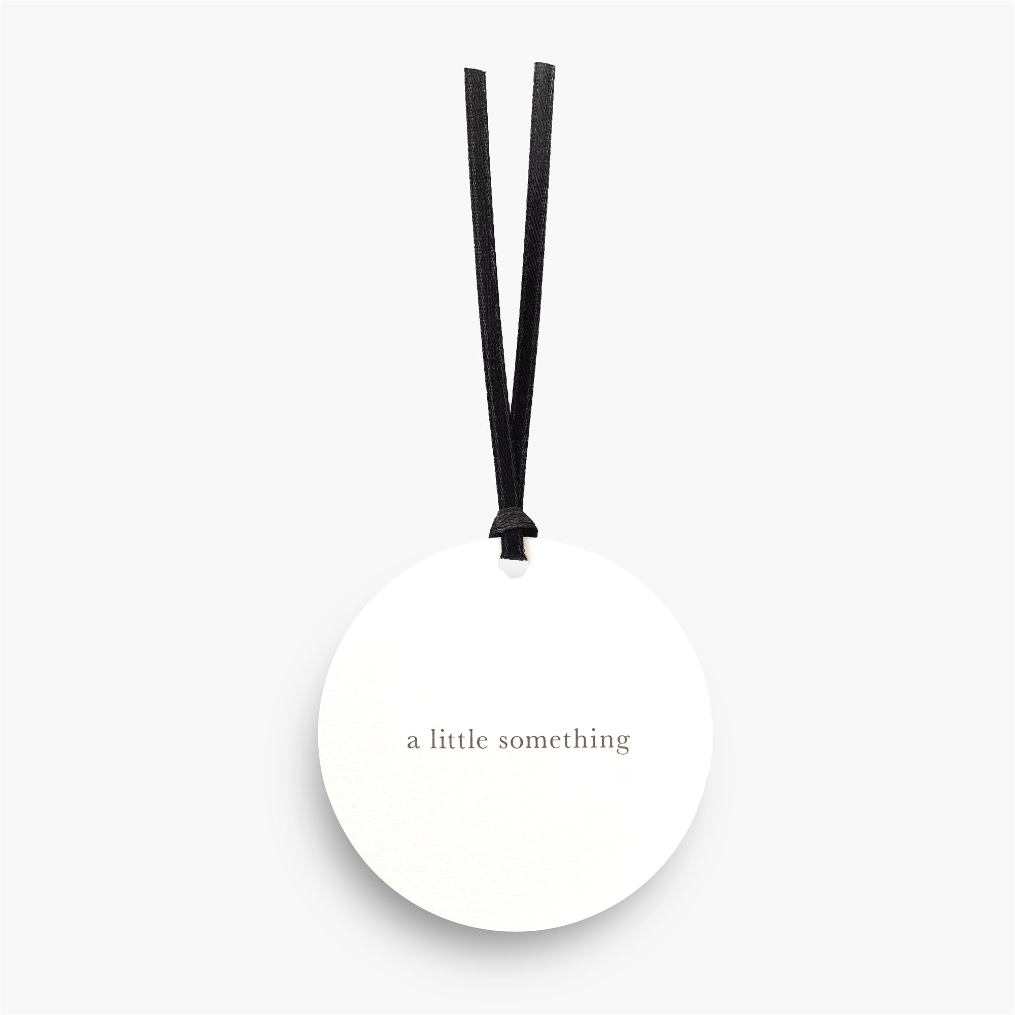 Circular gift tags offer letterpress expressions on brilliant white 184 lb cotton cardstock with attached black ribbon. Packaged Individually.