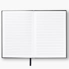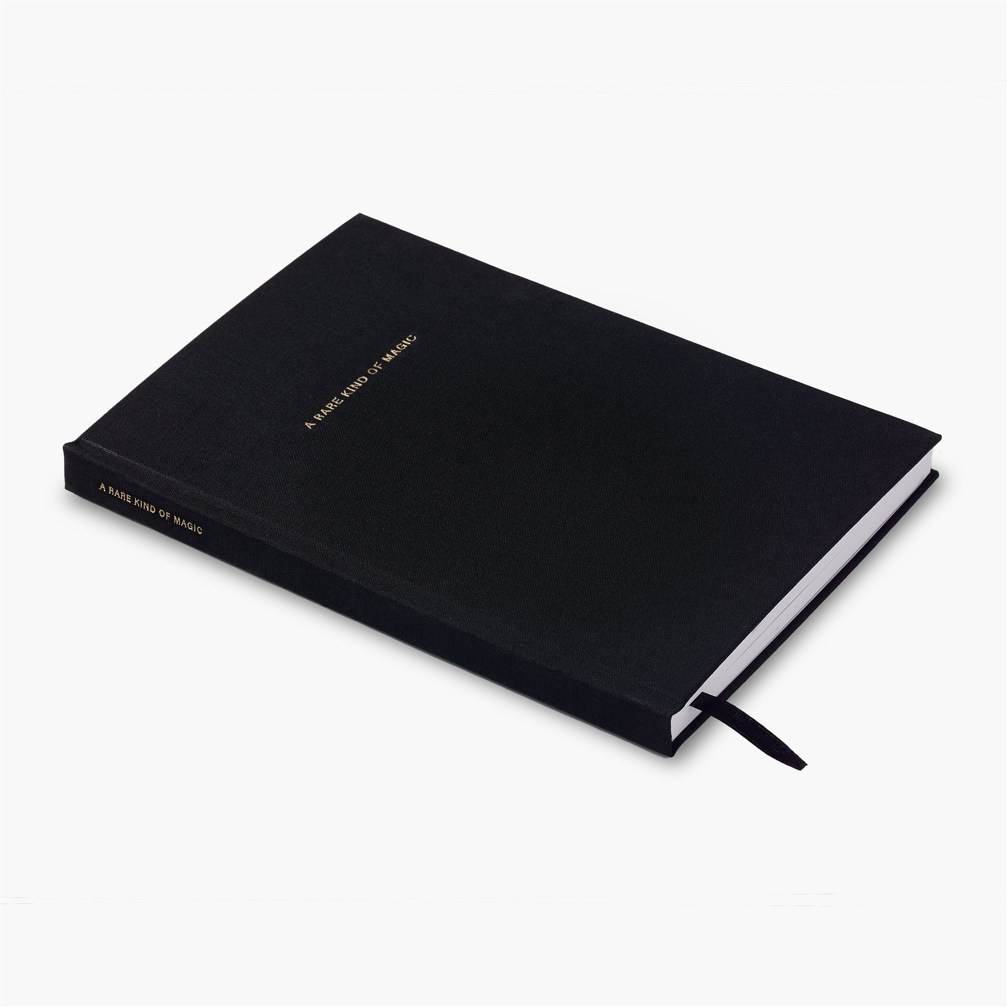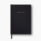 Black linen notebook featuring a minimal gold foil expression houses 160 lined pages. Black satin Bookmark included.