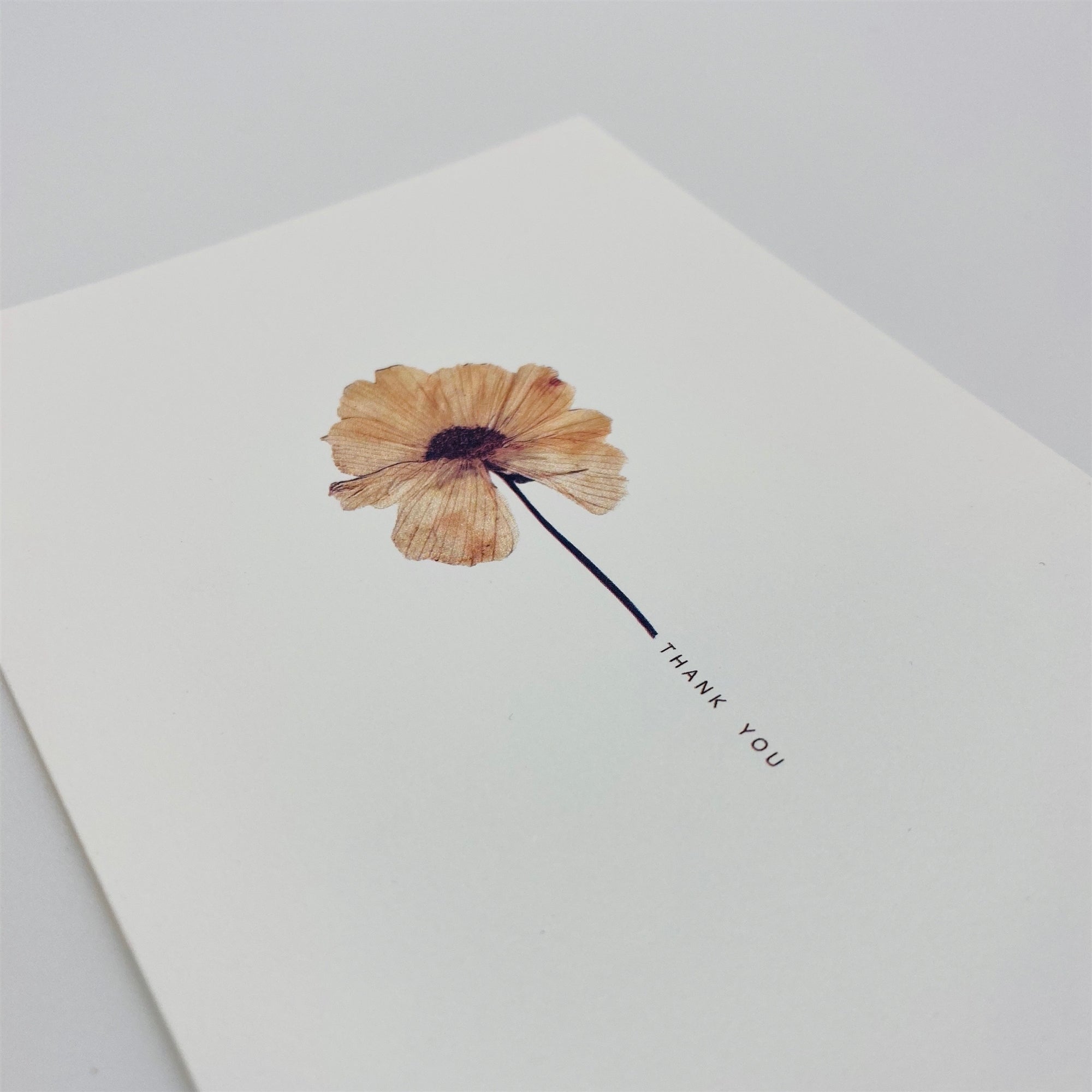 Greeting cards feature images of pressed botanical specimens and thoughtful expressions in a modern typography. Folded cards with the Inside left blank for a personal sentiment. Each card is paired with a kraft colored recycled paper envelope and a c