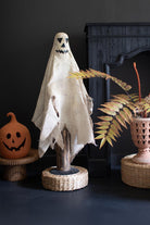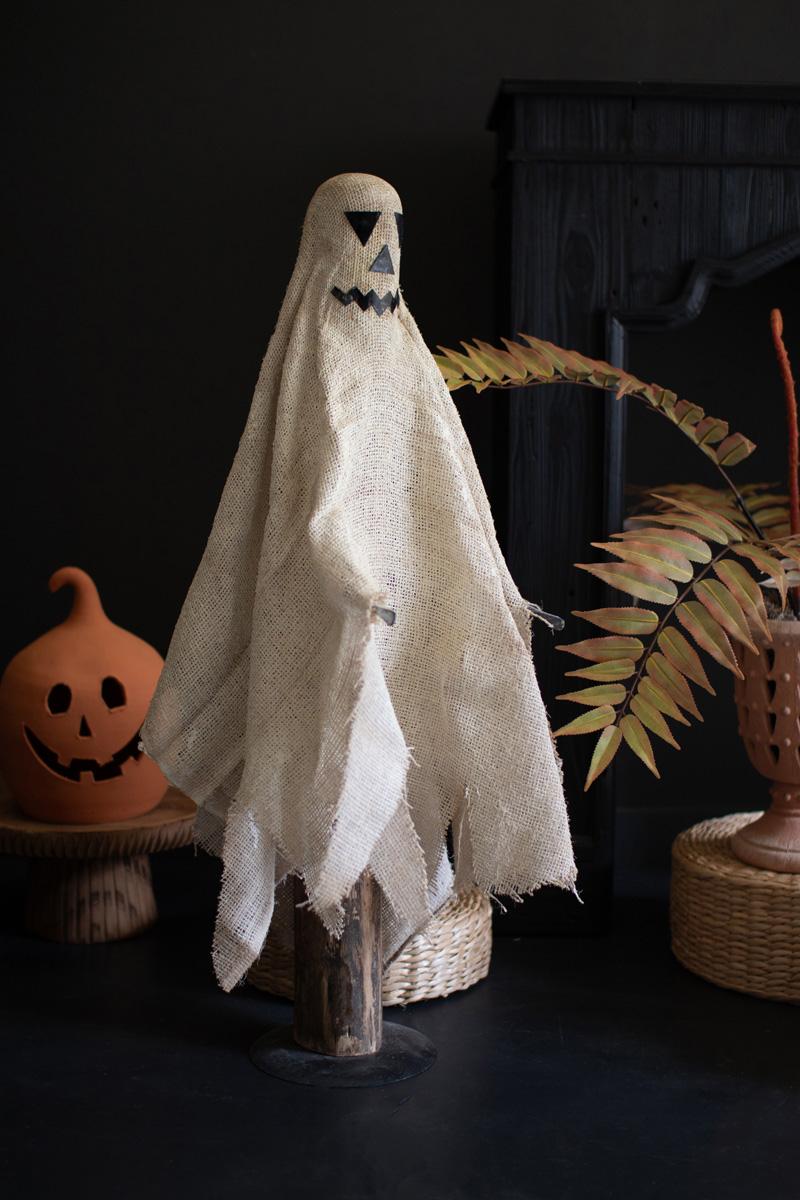 Painted Jute Halloween Ghost On A Eucalyptus Wood Base