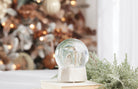 Celebrate the true meaning of Christmas with this Musical Nativity Scene Snow Globe. Featuring a beautifully crafted Holy Family—Joseph, Mary, and Baby Jesus—inside a wintry snow-filled globe, this elegant piece is set on a faux wood grain base, adding a touch of rustic charm. The wind-up musical feature plays the beloved tune "Jesus Loves Me," bringing warmth and nostalgia to your holiday décor. Designed in soft white and beige tones, this timeless keepsake is perfect for displaying on a tabletop, shelf, or mantel, making it a meaningful addition to your seasonal decorations.