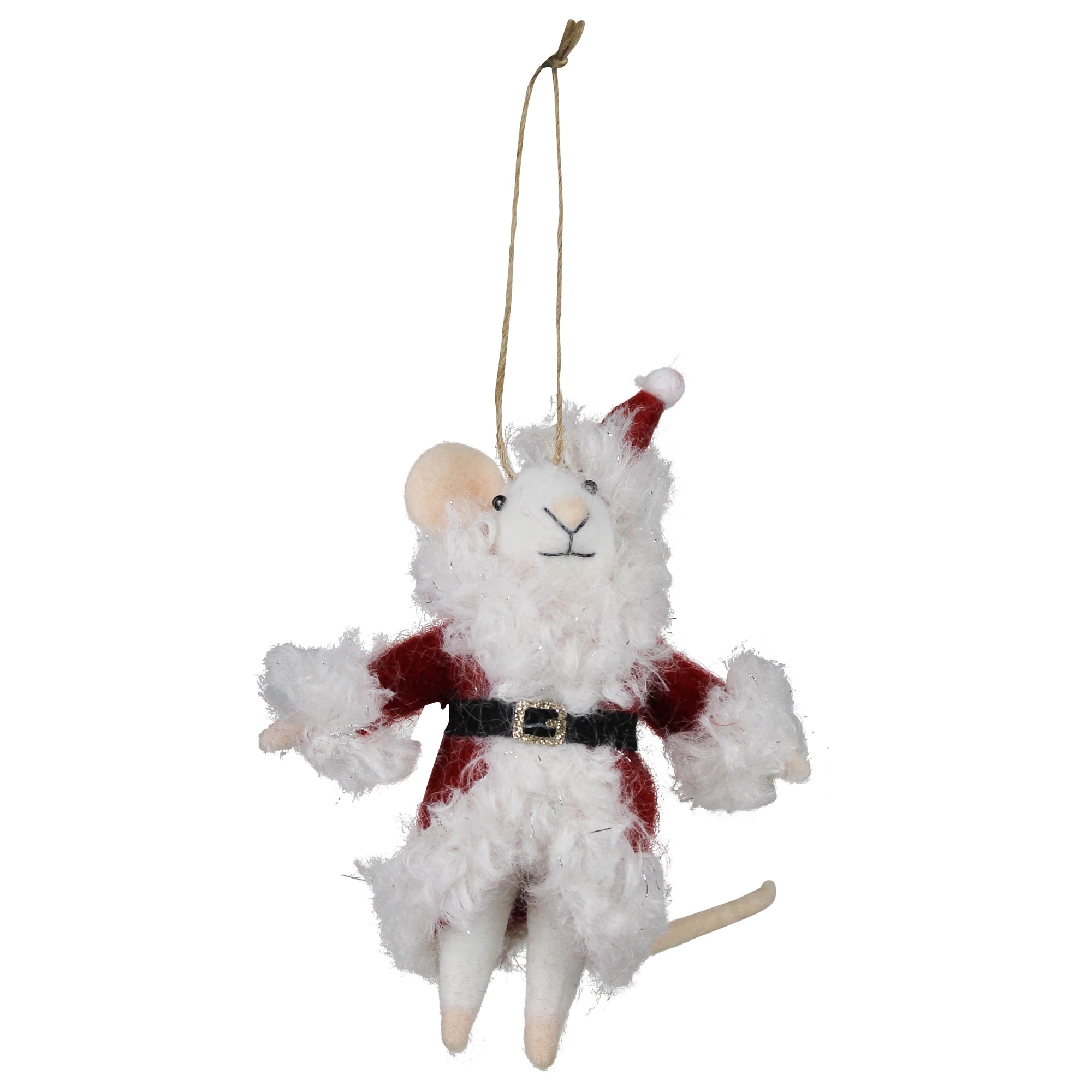 White Santa Mouse Ornament, Felt