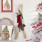 Embrace the spirit of winter with the Decorative Pair of Skis and Poles. Featuring earthy brown tones and a natural wood grain finish, this rustic set showcases distressed metal poles and accents, all tied together with a leather cord string. Perfect for ski or cabin-themed holiday displays, these skis add a charming touch to your Christmas tree, mantle, or wall. Whether displayed as a seasonal accent or incorporated into your holiday decor, this decorative piece brings the beauty of winter sports into your home.