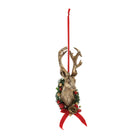 Add a rustic woodland touch to your holiday decor with these Deer Head Mount Ornaments. Featuring wintry gold and red tones with metallic accents, each ornament showcases a rustic deer head design adorned with a pine wreath and pinecone details. The delicate ribbon hanger makes for easy display, whether on your Christmas tree, wreath, or mantel. Sold in a set of 6 matching pieces, these ornaments bring cabin-themed charm and a touch of festive cheer to your holiday display.