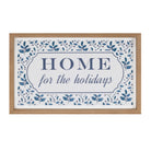 Invite the warmth of the season into your home with this "Home for the Holidays" wall sign. The sign features wintry white and blue tones, paired with a natural wood grain frame for a cozy and inviting feel. An ornate foliage pattern surrounds the classic "Home for the Holidays" sentiment, creating a festive centerpiece perfect for your living room, entryway, or any space that needs a little seasonal charm. The piece comes with a sawtooth hook on the back for securing it safely to the wall of your home. Gift this beautiful sign to a loved one or display it in your own home to welcome the holidays with modern elegance.