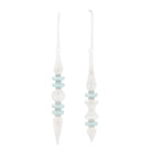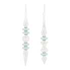 Enhance your Christmas tree with these stunning Iridescent Finial Drop Ornaments. Featuring wintry blue tones and a clear glass base, these ornaments are finished with a chic iridescent sheen that catches the light beautifully. The traditional finial shape is adorned with a ribbed texture, adding depth and elegance to your festive decor. Each ornament is topped with an elegant swirled glass cap and a delicate ribbon hanger for easy hanging. Sold in a set of 24 pieces with two assorted designs, these ornaments will bring a touch of glamorous holiday cheer to your home, whether on your tree or woven into wreaths and garlands.