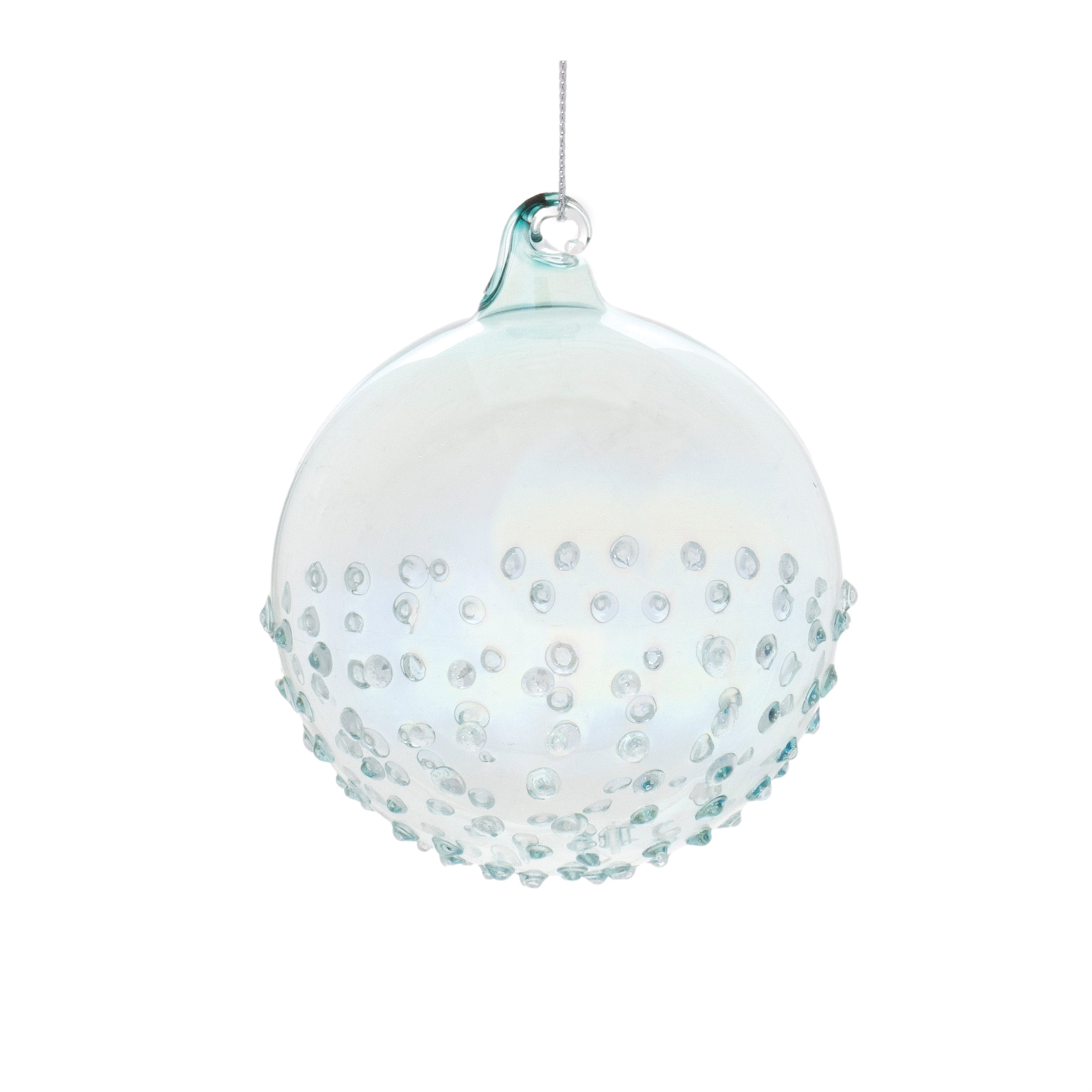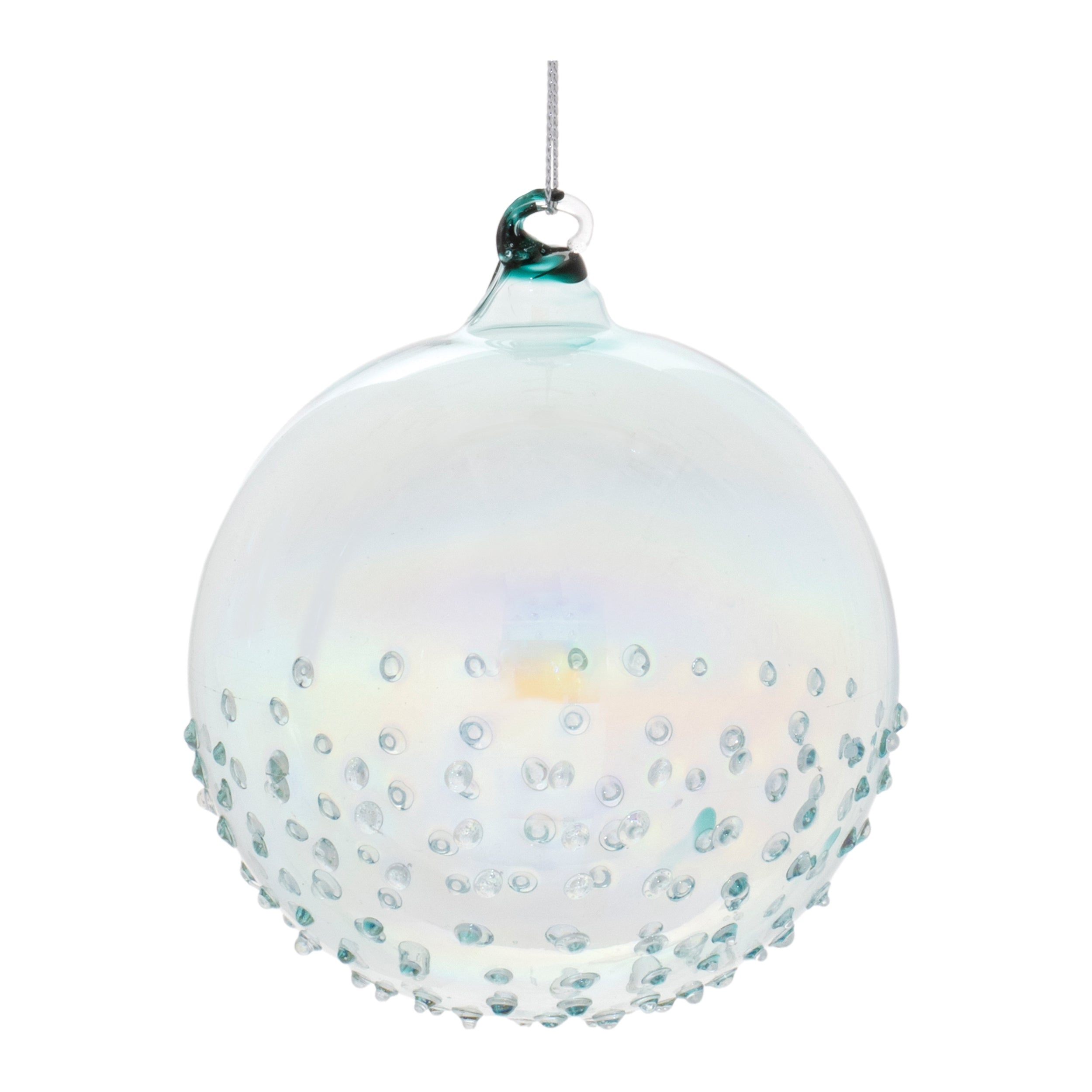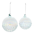 Add a touch of elegance to your holiday decor with the Iridescent Glass Ball Ornaments. These ornaments feature wintry light blue tones with a chic iridescent finish, enhancing the traditional ball shape with a textured accent. The swirled glass ornament cap and delicate string hanger complete the design. Sold in a set of 12 with two assorted sizes, these beautiful ornaments are perfect for your Christmas tree, wreaths, or mantle garlands, bringing modern holiday cheer to every corner of your home.