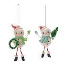 Bring a touch of nostalgic holiday cheer to your home with these delightful Nostalgic Snowman Ornaments. Featuring wintry white and blue tones with glittered accents, each snowman ornament is dressed in a classic Santa hat, with pine tree and wreath details. Sold in a set of 12, with two assorted designs, these charming ornaments are perfect for adding a playful and festive atmosphere to your Christmas tree, wreath, or mantle garland.