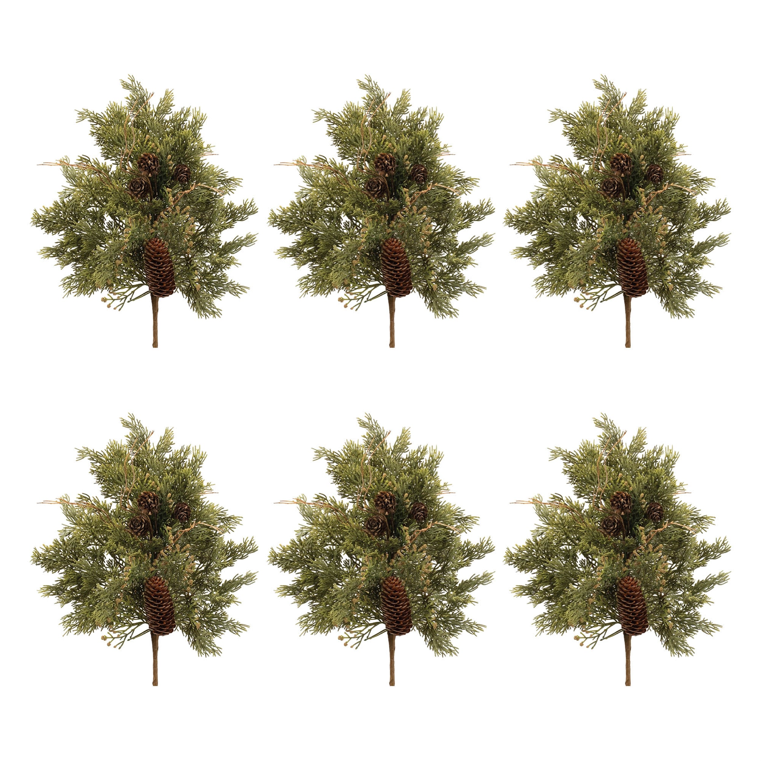 Bring the beauty of nature into your holiday decor with the Pine & Pinecone Spray. Designed with lush, variegated pine branches and accented with natural-looking pinecones, this spray adds a rustic, festive touch to any seasonal arrangement. The wired stem and branches allow for effortless styling, making it a perfect addition to wreaths, garlands, centerpieces, or porch pots. Sold in a set of 6, these sprays provide a full and natural look to enhance your winter displays.