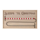 Keep the Christmas spirit alive all season long with this charming "Sleeps Til Christmas" countdown sign. Featuring festive red and white tones and a natural wood grain finish, this decorative piece includes a playful wood beaded wire to help you count down the days to Christmas, one bead at a time. Hang it near your Christmas tree or mantle and update it daily for a fun and interactive way to celebrate the holiday season. This piece contains two nail holes on the back for securing it safely to the walls of your home. Perfect for adding a touch of holiday cheer to any room!