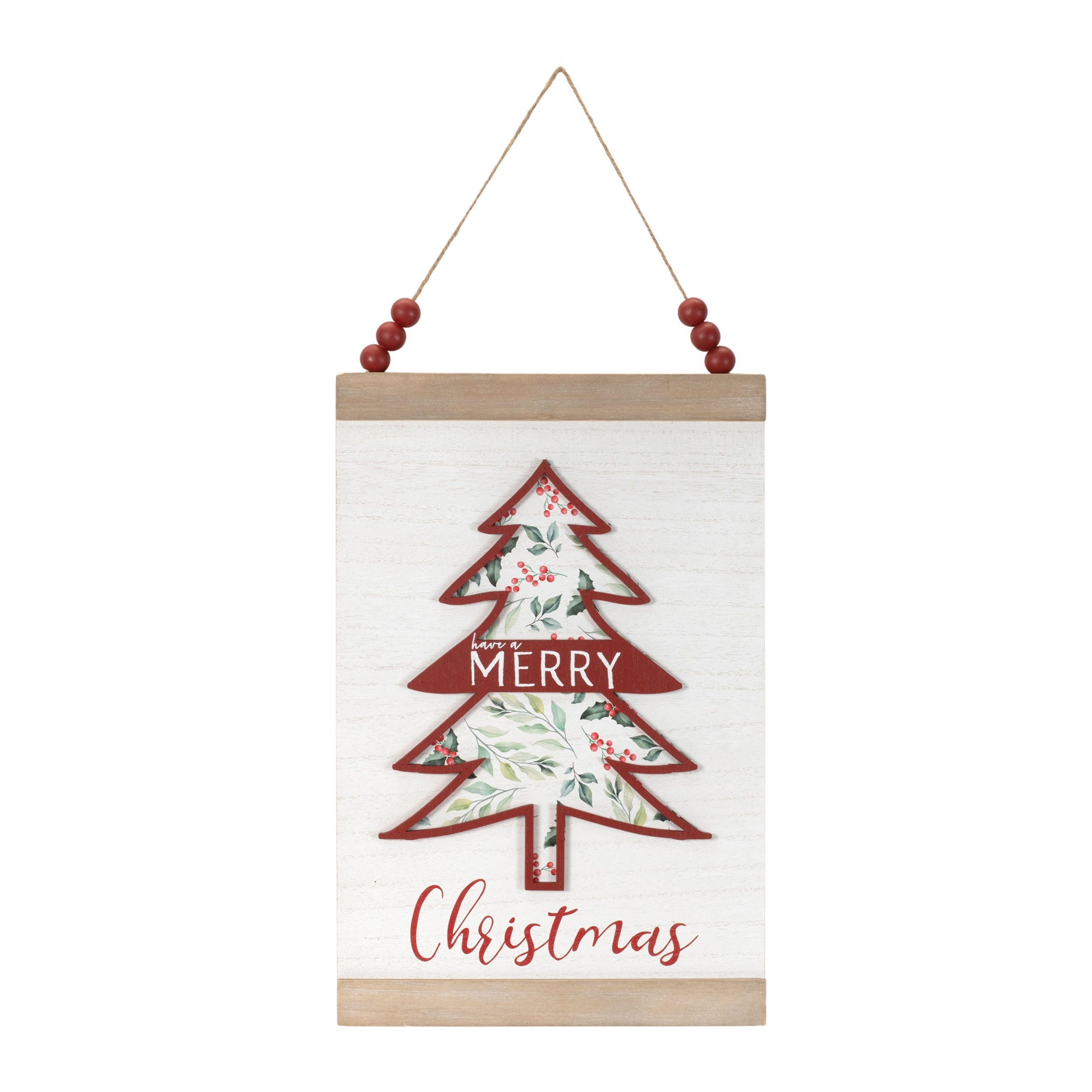 Add a festive touch to your home with the Wood Beaded Merry Christmas Banner Set. Featuring classic red and green tones, these banners display beloved Christmas sentiments, "Merry Christmas" and "Jingle All the Way," paired with traditional pine tree shapes and modern winter foliage prints. The rustic natural wood grain accents and wood beaded twine hangers complete the look, making these banners the perfect addition to your living room or entryway. Each piece comes with a string hanger on the top for securing it safely to the walls of your home. Sold in a set of two assorted pieces, these banners also make a thoughtful gift for loved ones this holiday season.