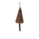 Bring woodland charm to your holiday decor with these Wood Beaded Pine Tree Ornaments. Crafted with earthy brown tones and a natural wood grain finish, each ornament features a modern cone pine tree design adorned with rustic beaded accents and a twig stem. The jute string hanger enhances the natural aesthetic, making them perfect for decorating your Christmas tree, wreaths, or garlands. Sold in a set of 4 with two assorted sizes, these ornaments make a delightful gift to share the beauty of the season with loved ones.