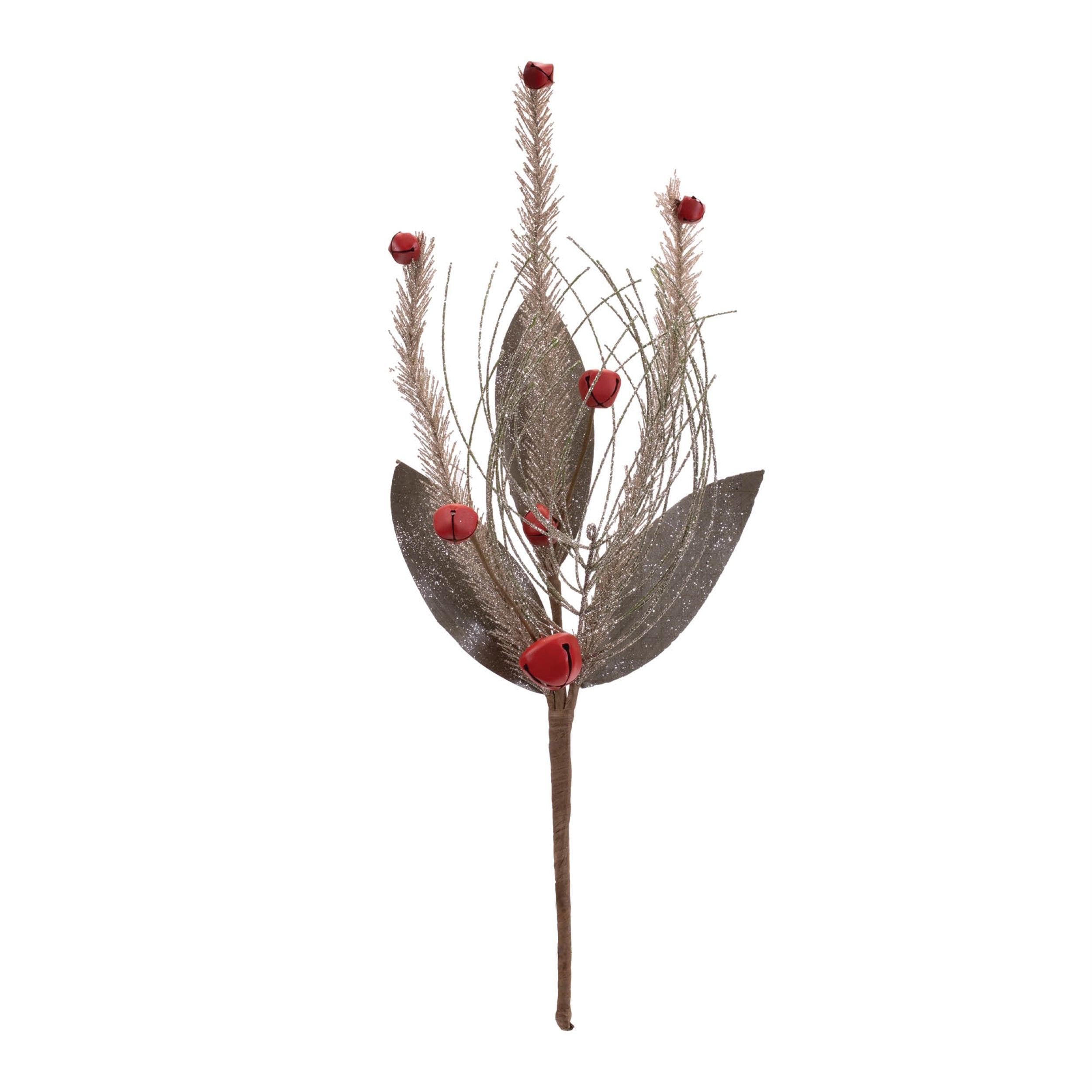 Glittered Pine and Sleigh Bell Spray (Set of 6)