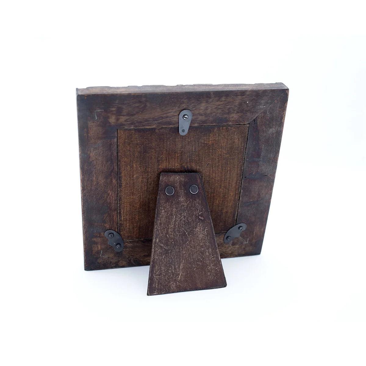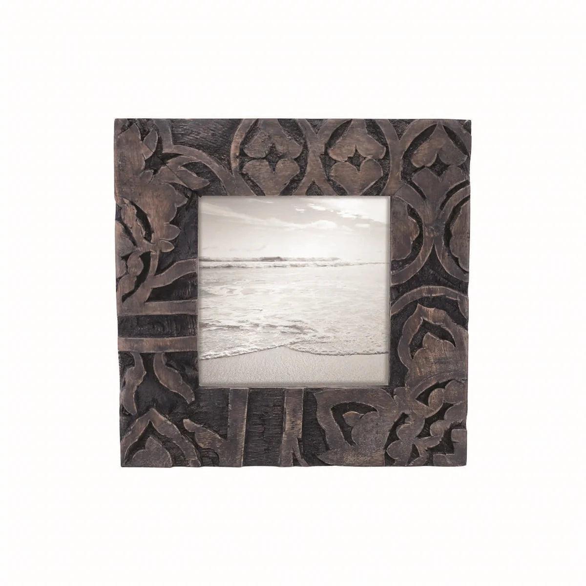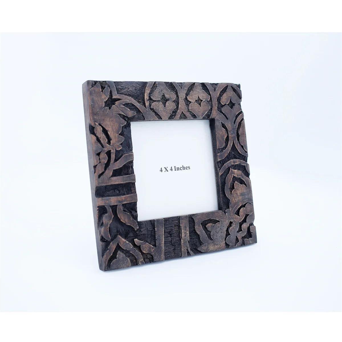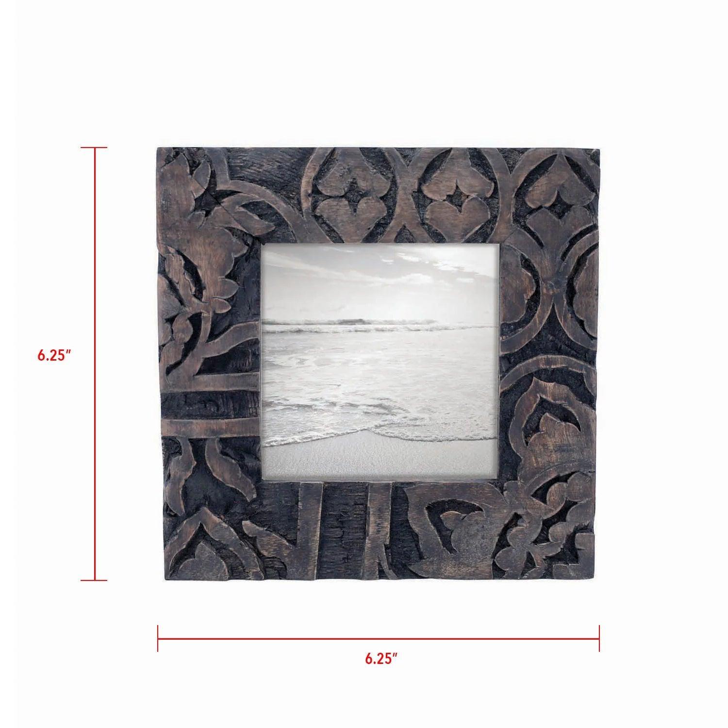 Experience the beauty of your cherished memories with the striking border of our 4X4 Carved Wood Square Photo Frame. The intricately carved design adds a touch of elegance to your 4" by 4" pictures. Handcrafted in India for a unique touch.