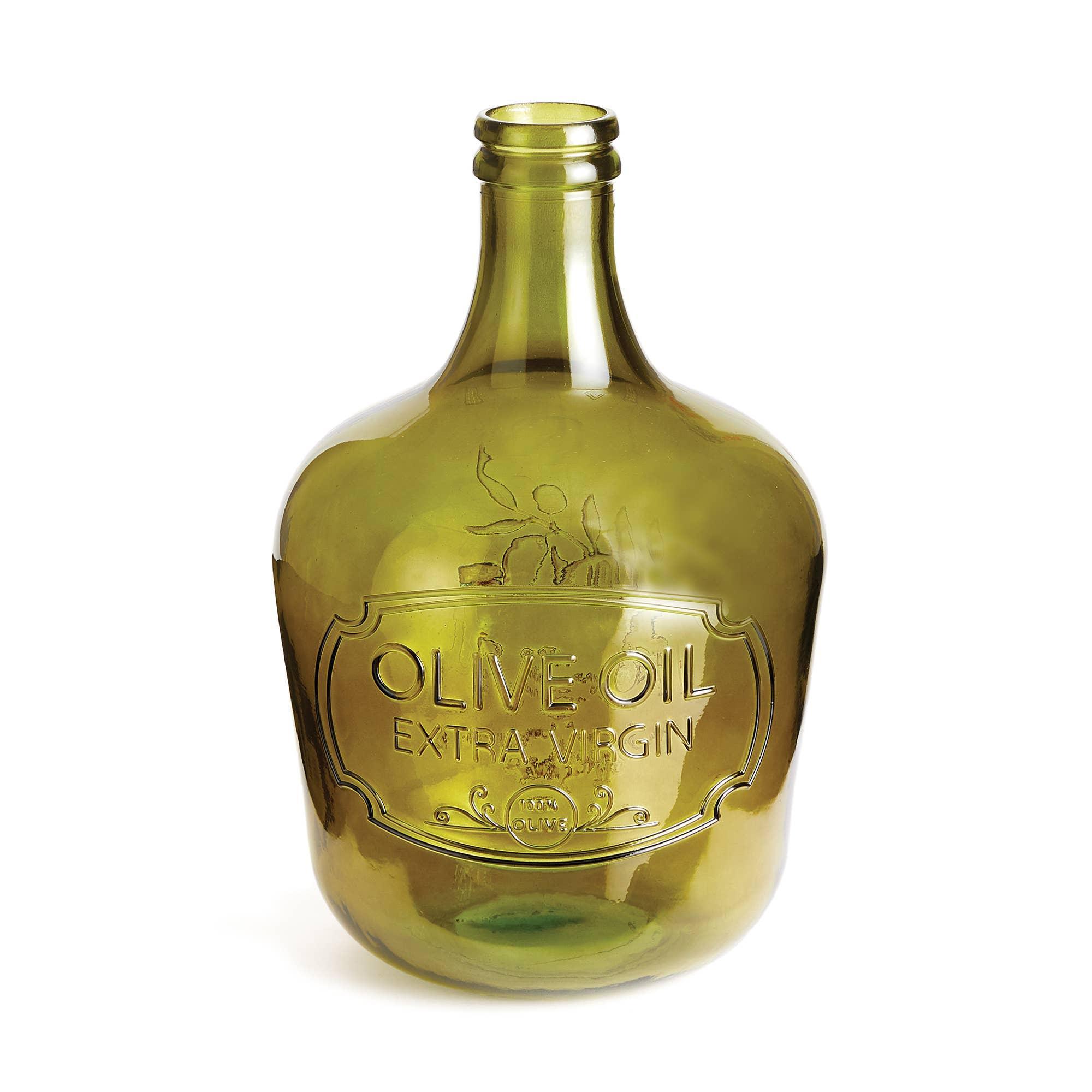 Crafted in Spain using recycled glass, this stunning bottle brings a vibrant olive green touch to your home décor. Display it on a tray with rustic wooden beads and olive sprigs for a luxurious, Mediterranean-inspired feel. Measuring 10.25 x 10.25 x 16.25, it is perfect for decorative use indoors. Keep it clean with a gentle soap and avoid harsh chemicals, as it is not suitable for dishwasher or microwave use.