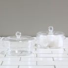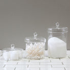 Utility Jars are stylish and versatile. They can be used in kitchen for dry goods and in the bathroom for cotton balls or bath salts. The Utility Jars include stoppers but are not air tight. Hand washing is recommended. Windex Capacity - 12oz