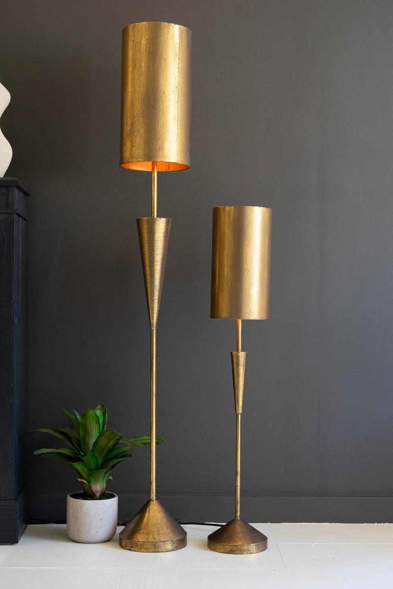 Antique Gold Floor Lamp With Metal Barrel Shade