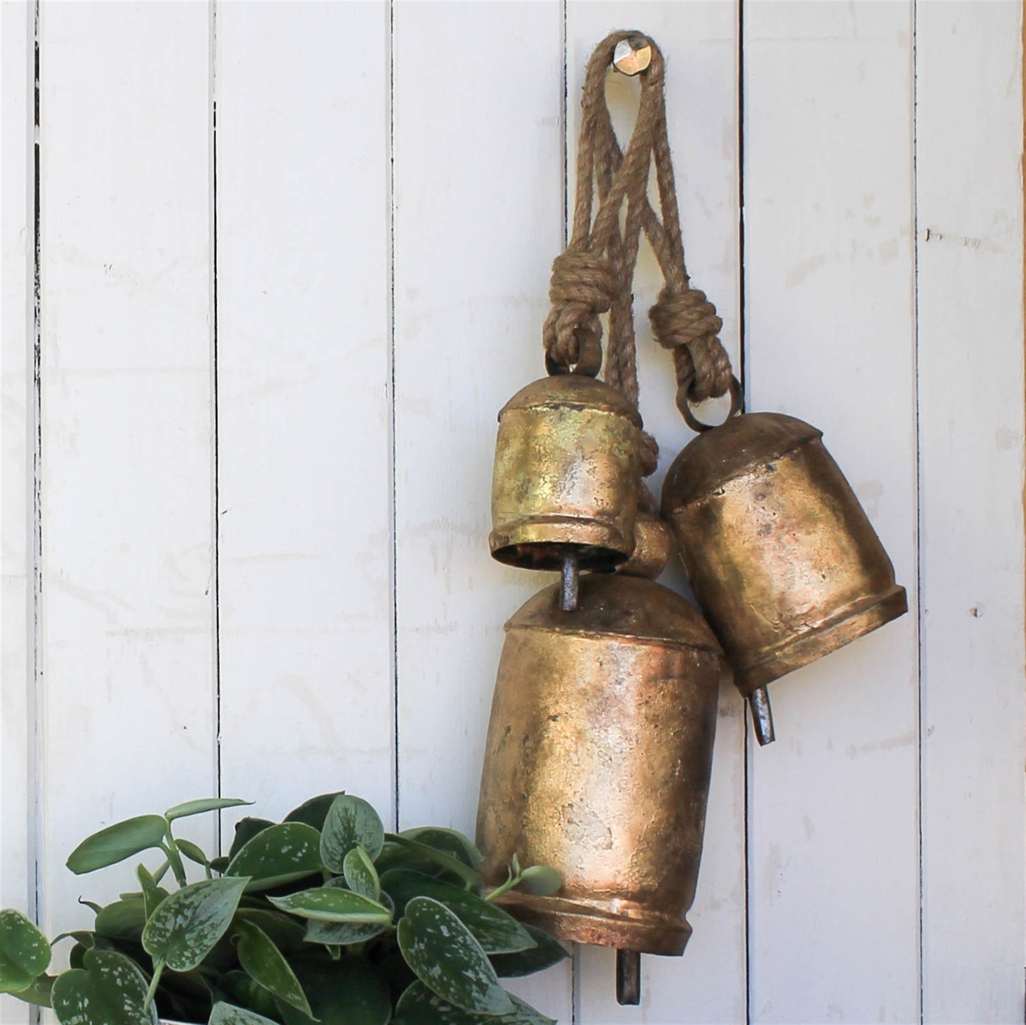 Chauk Bell with Rope Hanger, Brass - Med