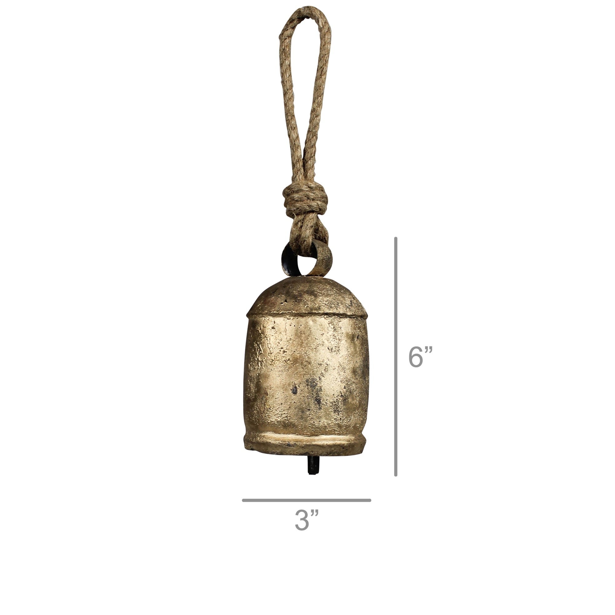 Think of rough and old world in the styling of these classic temple-style bells. Made of metal with brass plating and a metal clap which creates a pleasant ding. With an 8” rope hanger. with 8” rope hanger